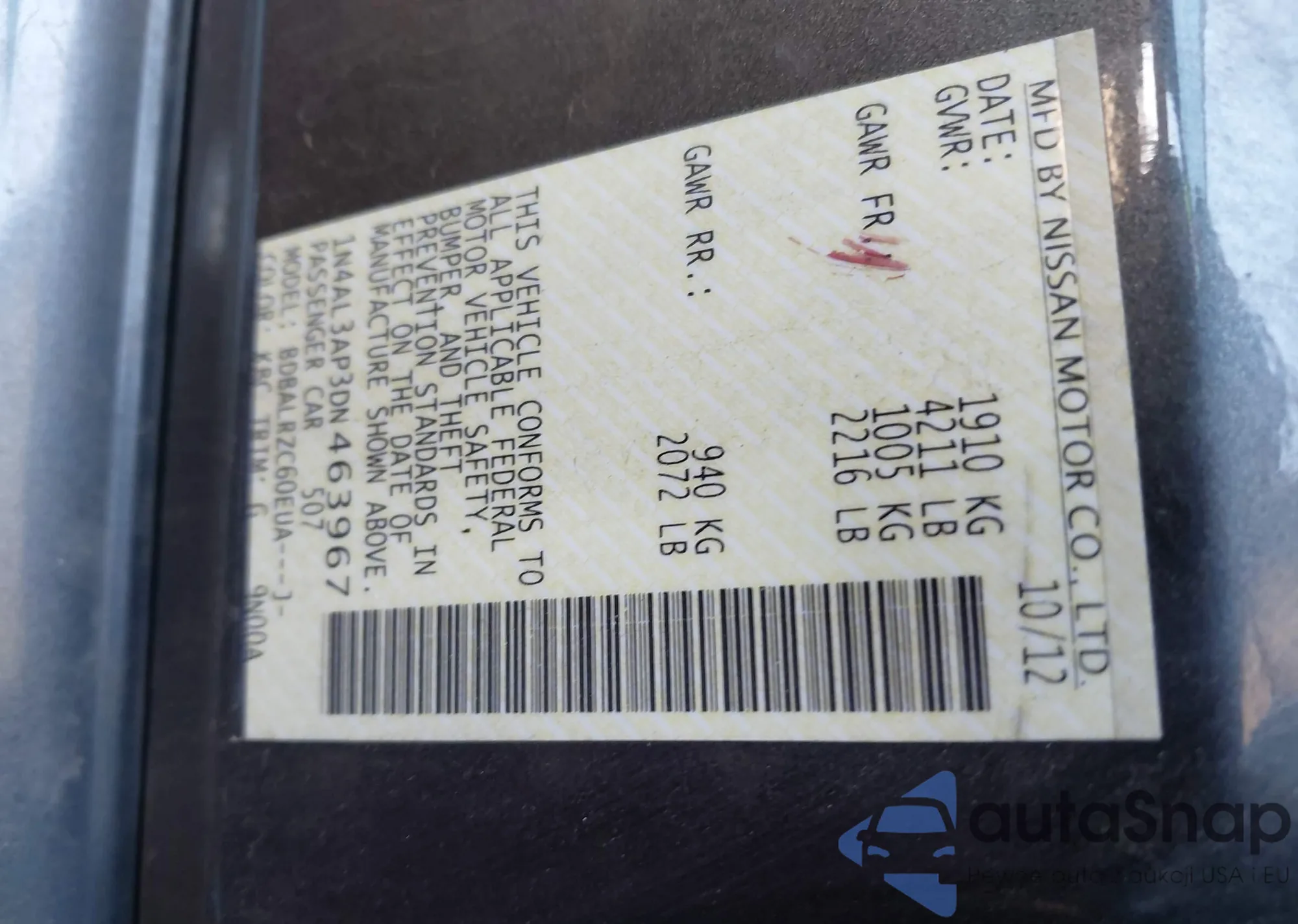 VIN: 1N4AL3AP3DN463967