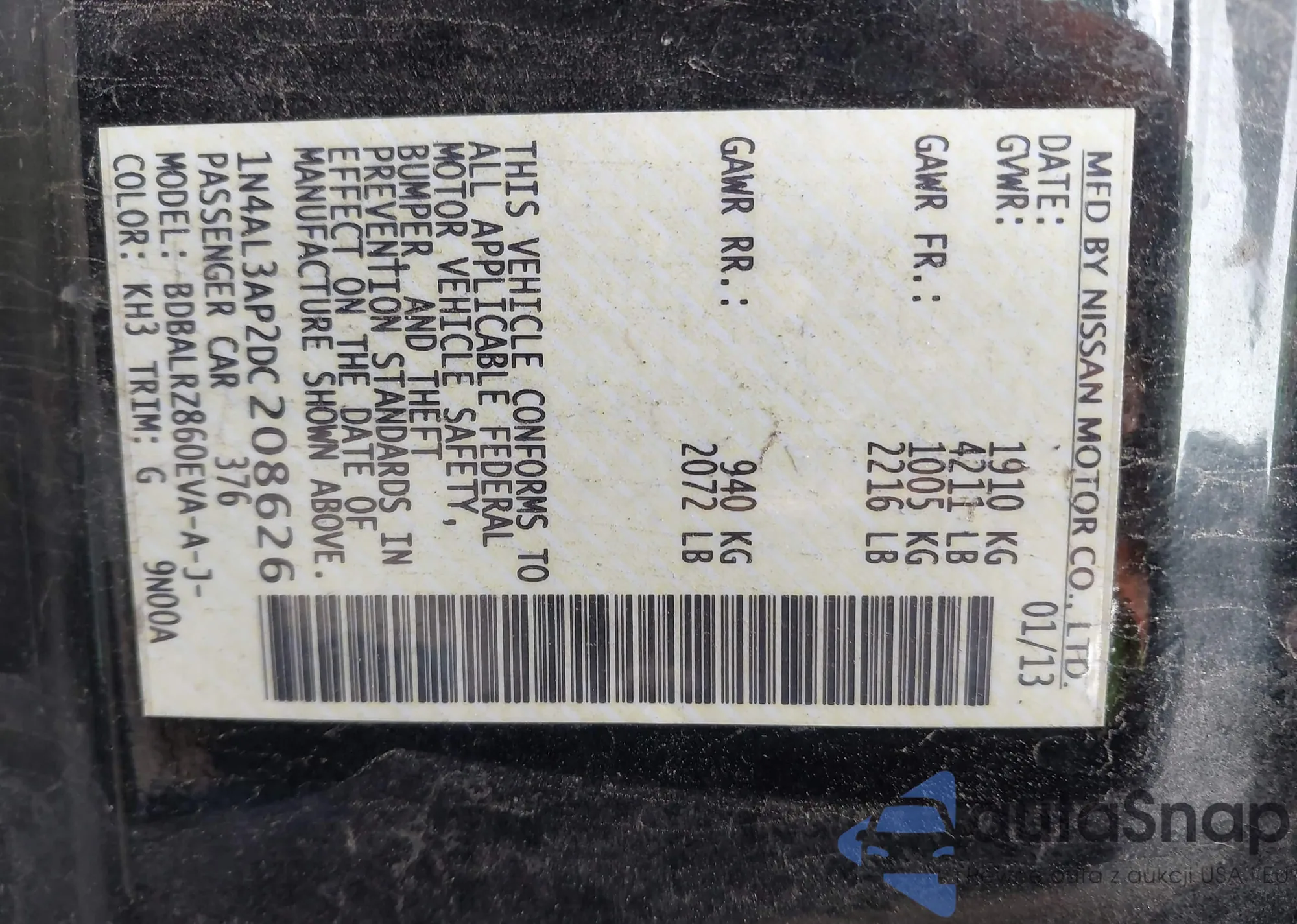 VIN: 1N4AL3AP2DC208626