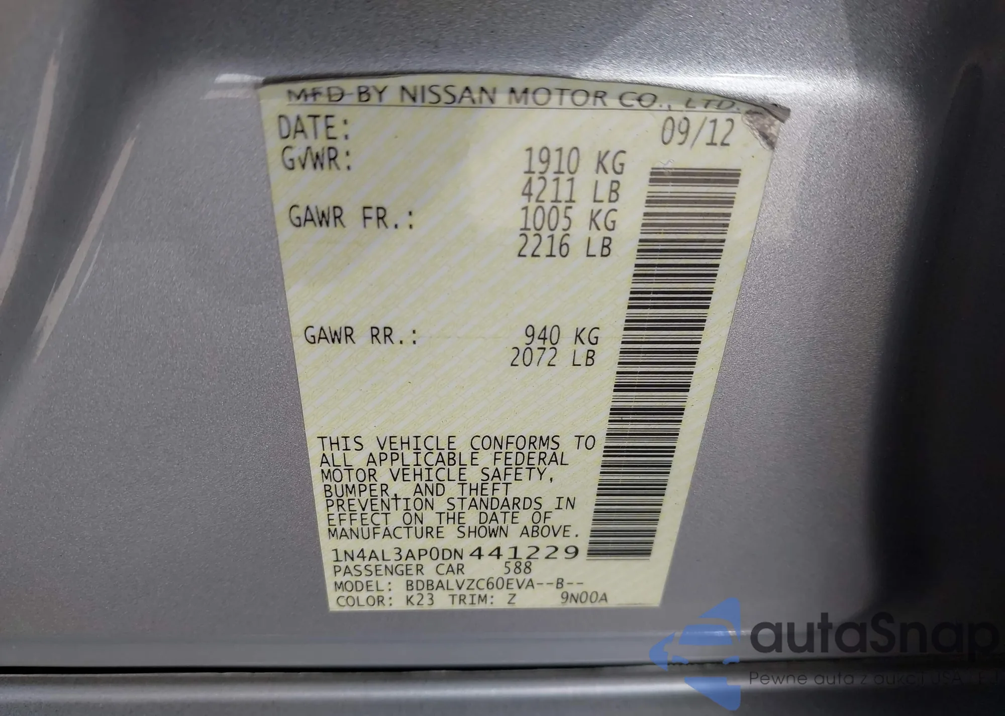 VIN: 1N4AL3AP0DN441229