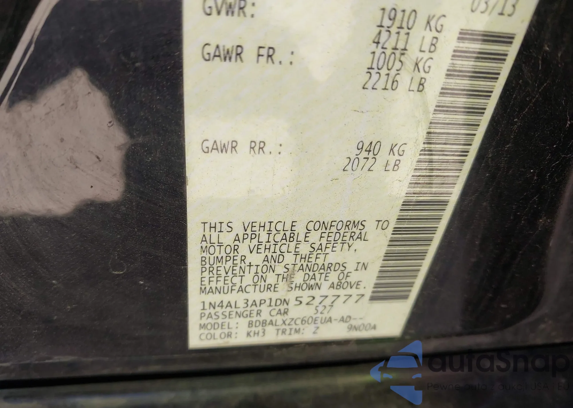 • VIN: 1N4AL3AP1DN527777