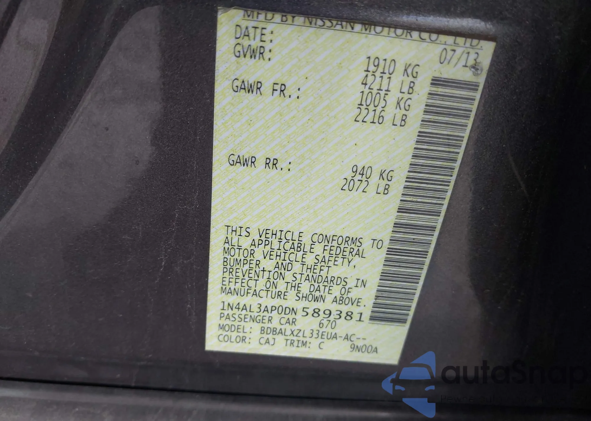 VIN: 1N4AL3AP0DN589381