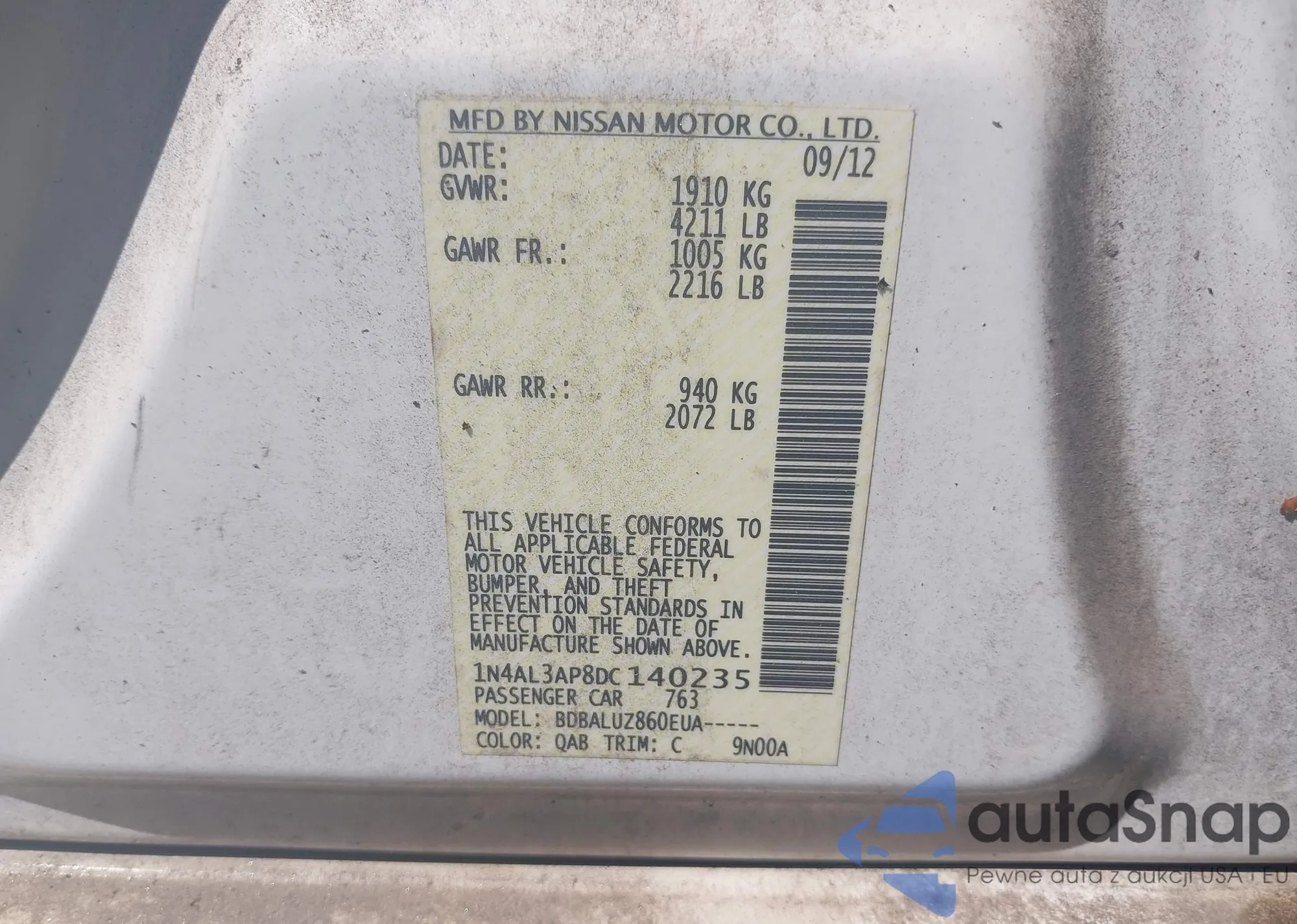 VIN: 1N4AL3AP8DC140235