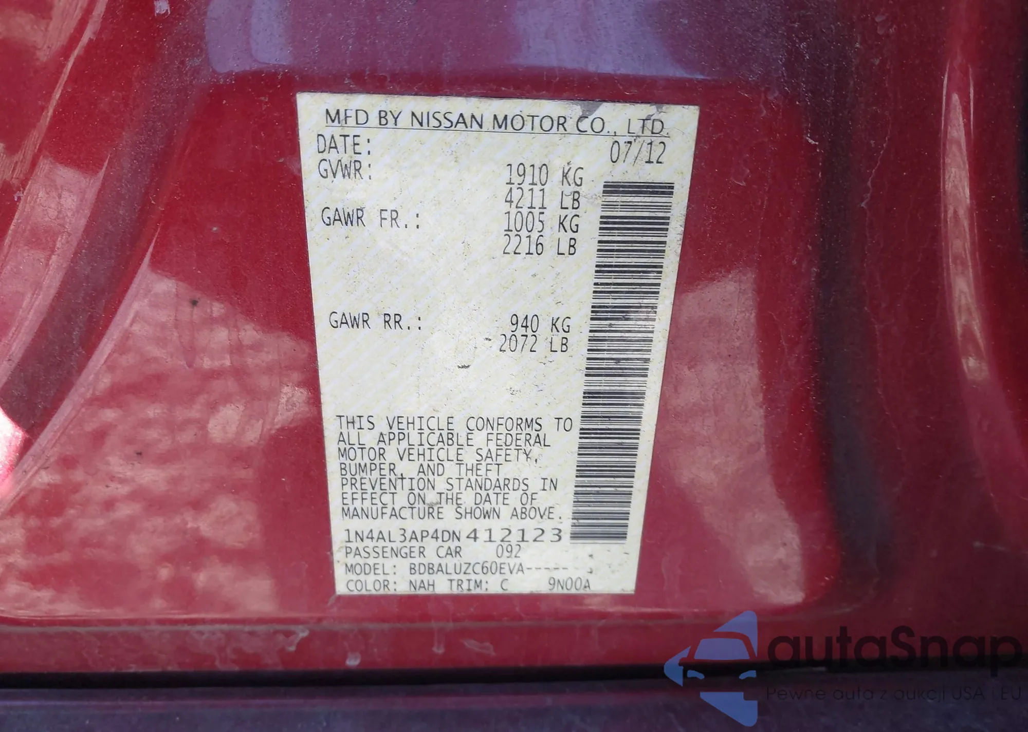 • VIN: 1N4AL3AP4DN412123