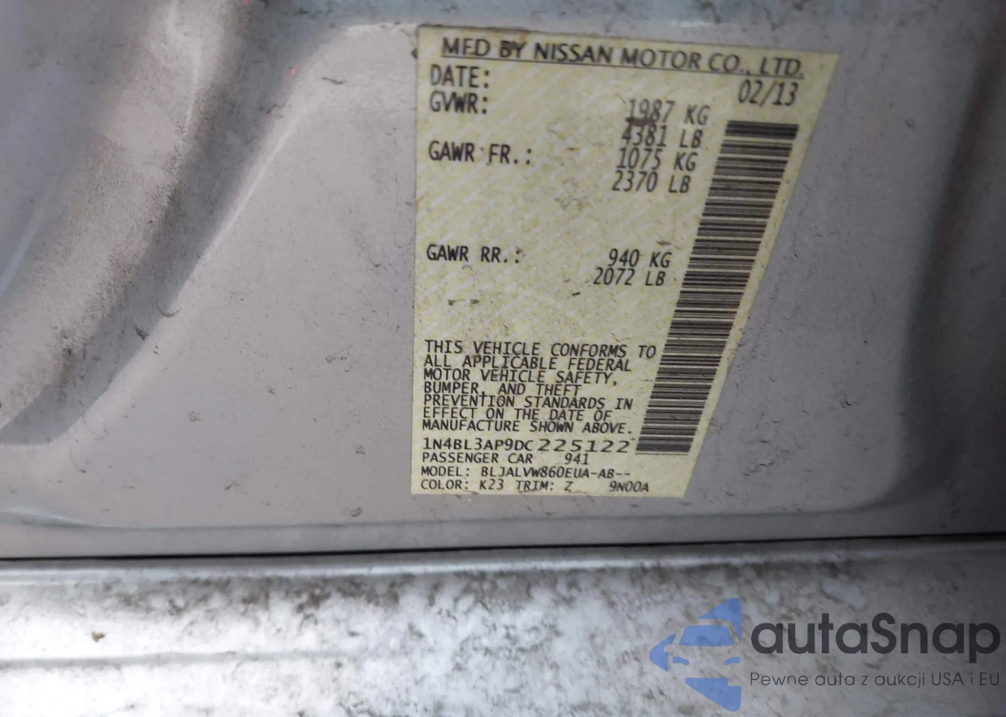 VIN: 1N4BL3AP9DC225122