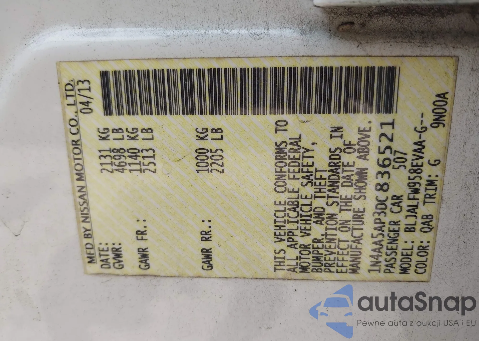 • VIN: 1N4AA5AP3DC836521