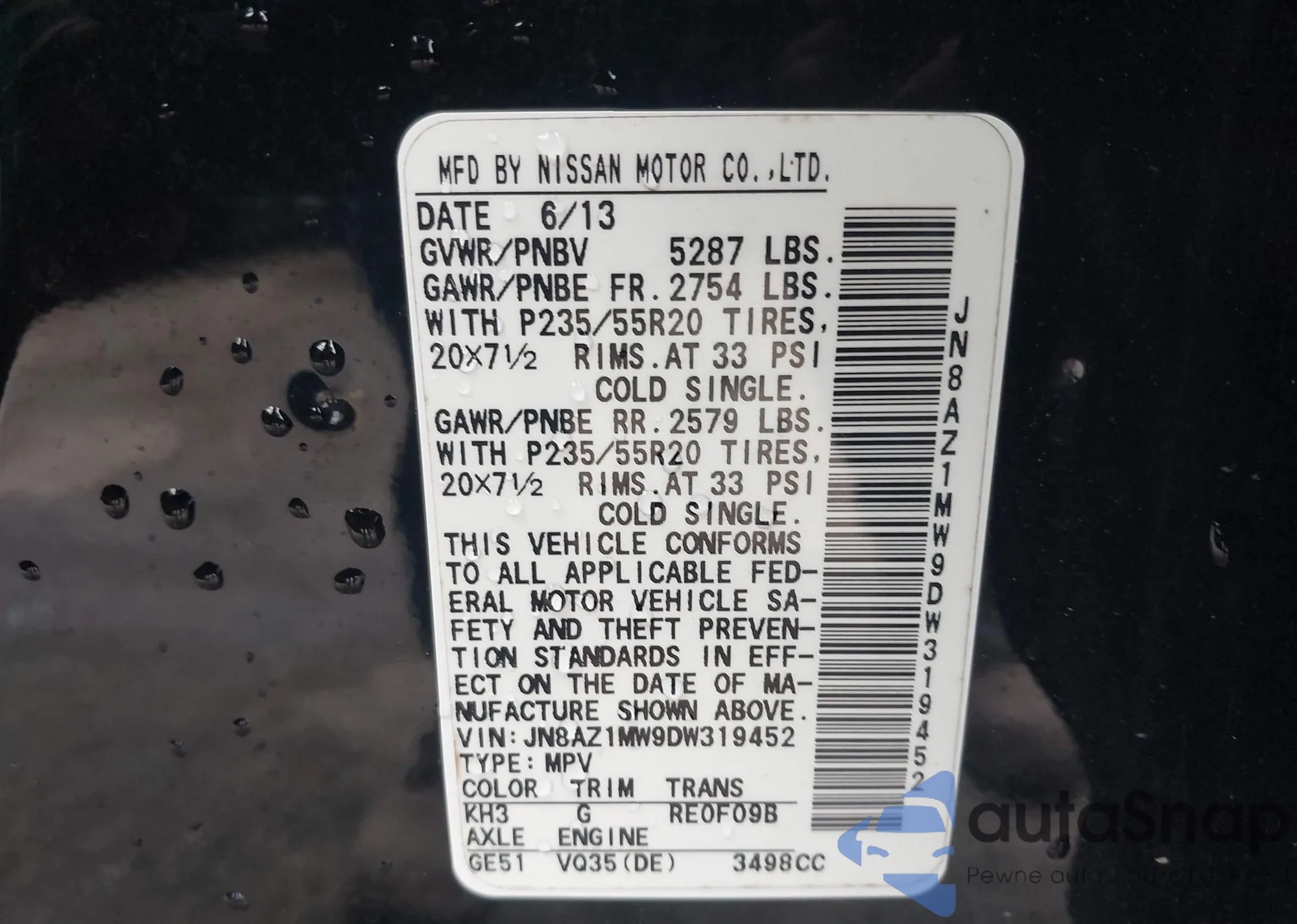 Samochód Nissan Murano 2013 (VIN JN8AZ1MW9DW319452) był już licytowany 1 razy i/lub sprzedaje go niezweryfikowany sprzedawca. Zalecamy raport Carfax i potwierdzenie możliwości rejestracji pojazdu przed zakupem.