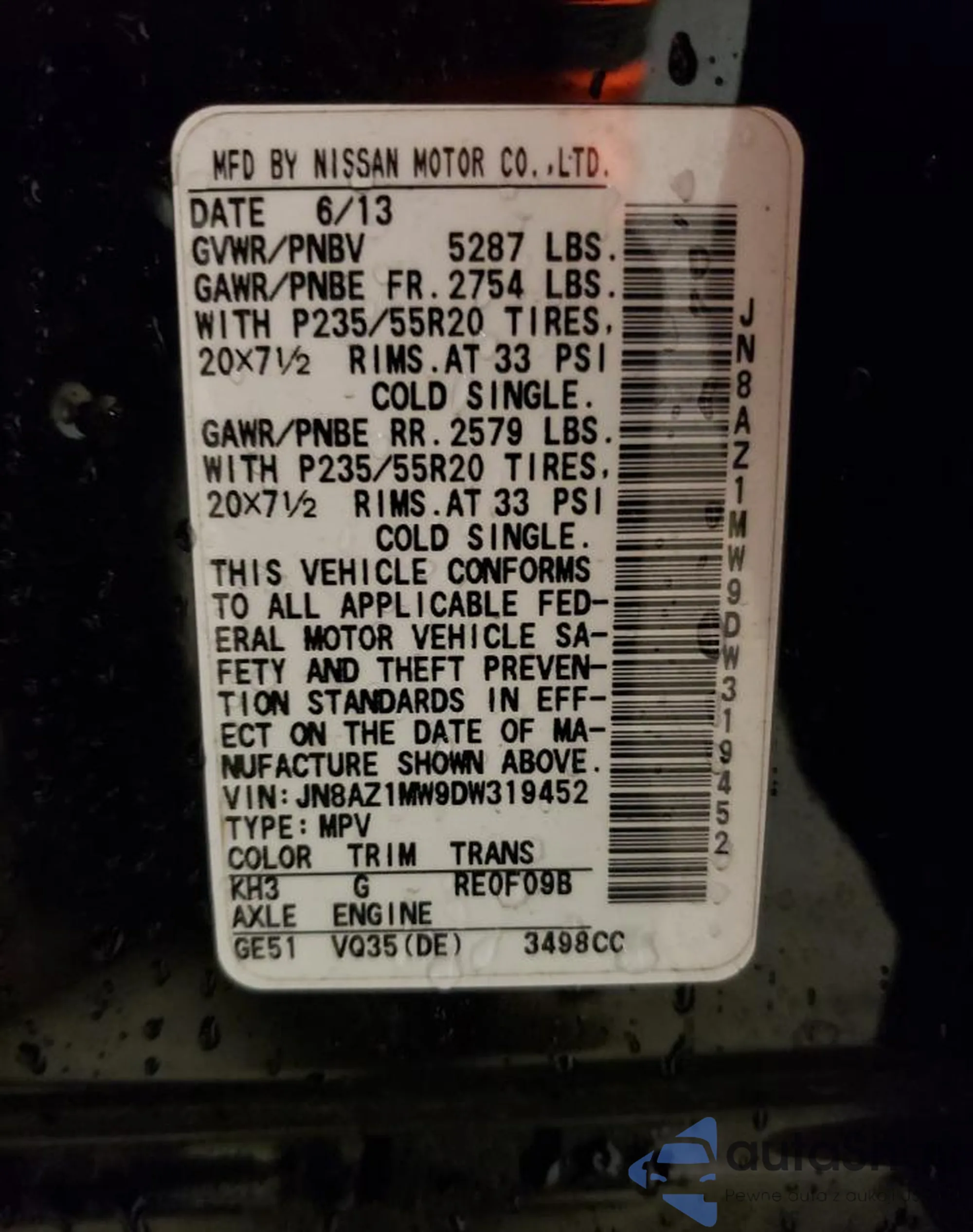 VIN: JN8AZ1MW9DW319452