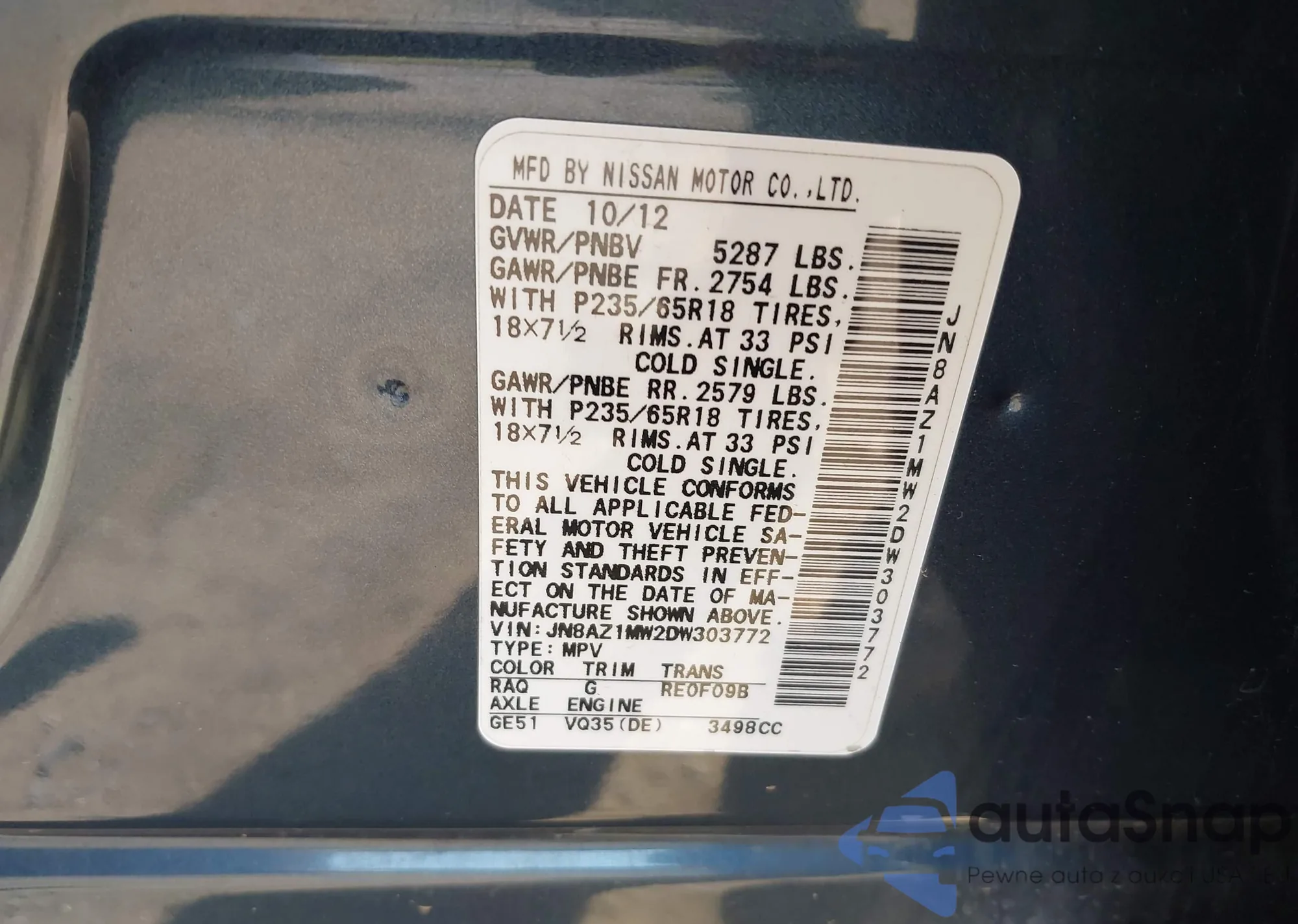 VIN: JN8AZ1MW2DW303772