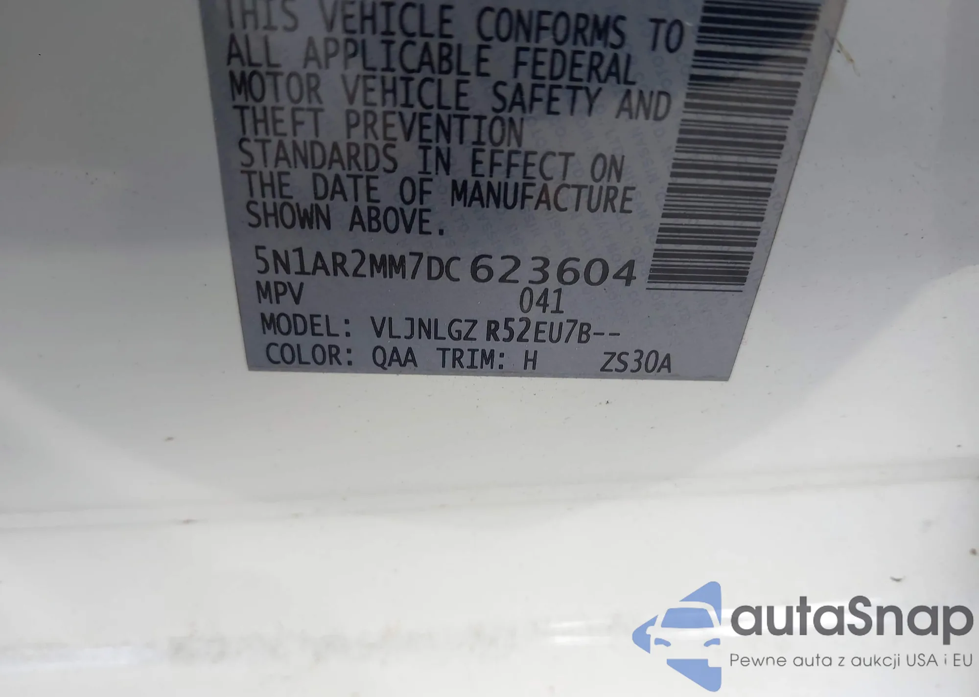 VIN: 5N1AR2MM7DC623604