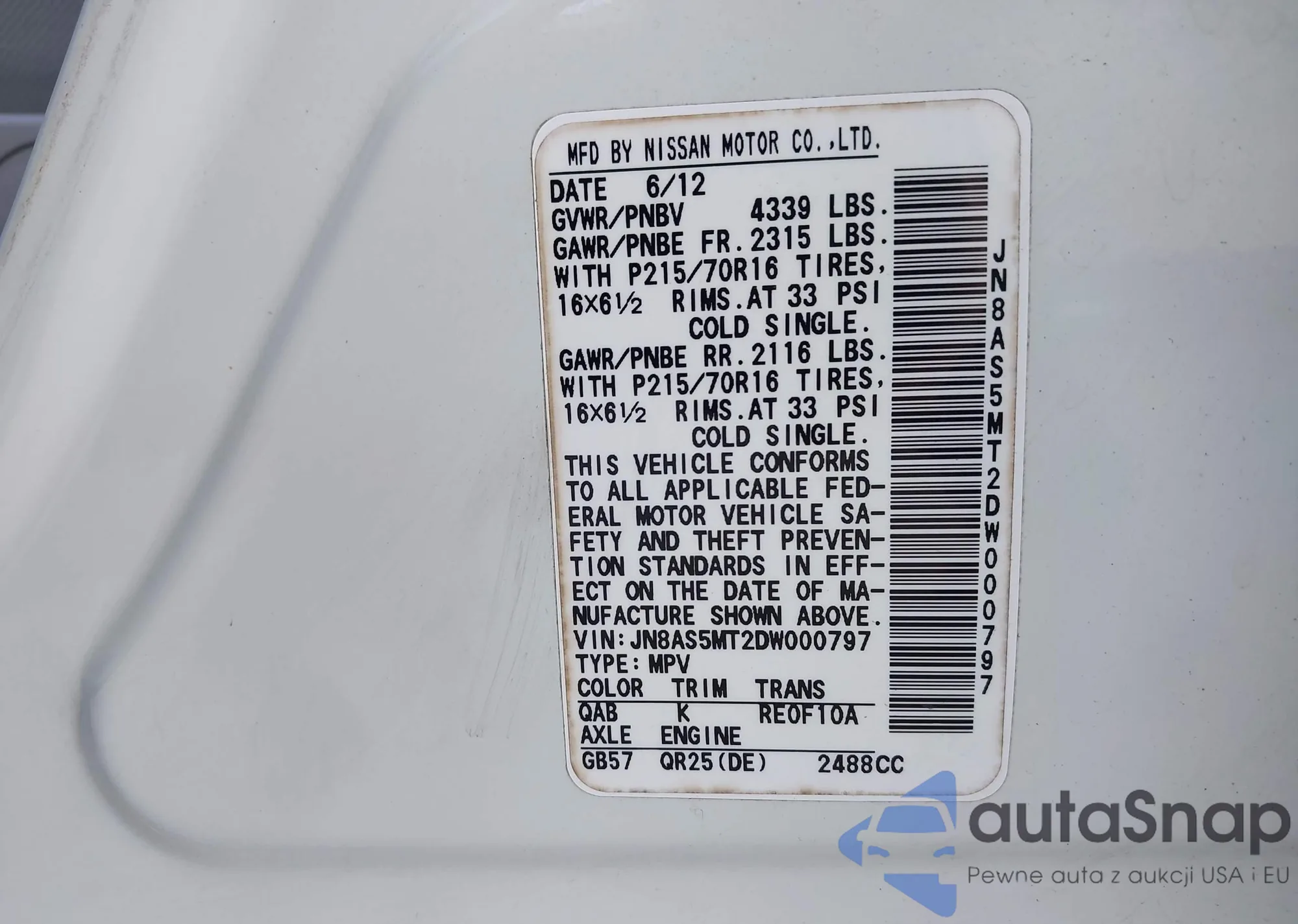 VIN: JN8AS5MT2DW000797