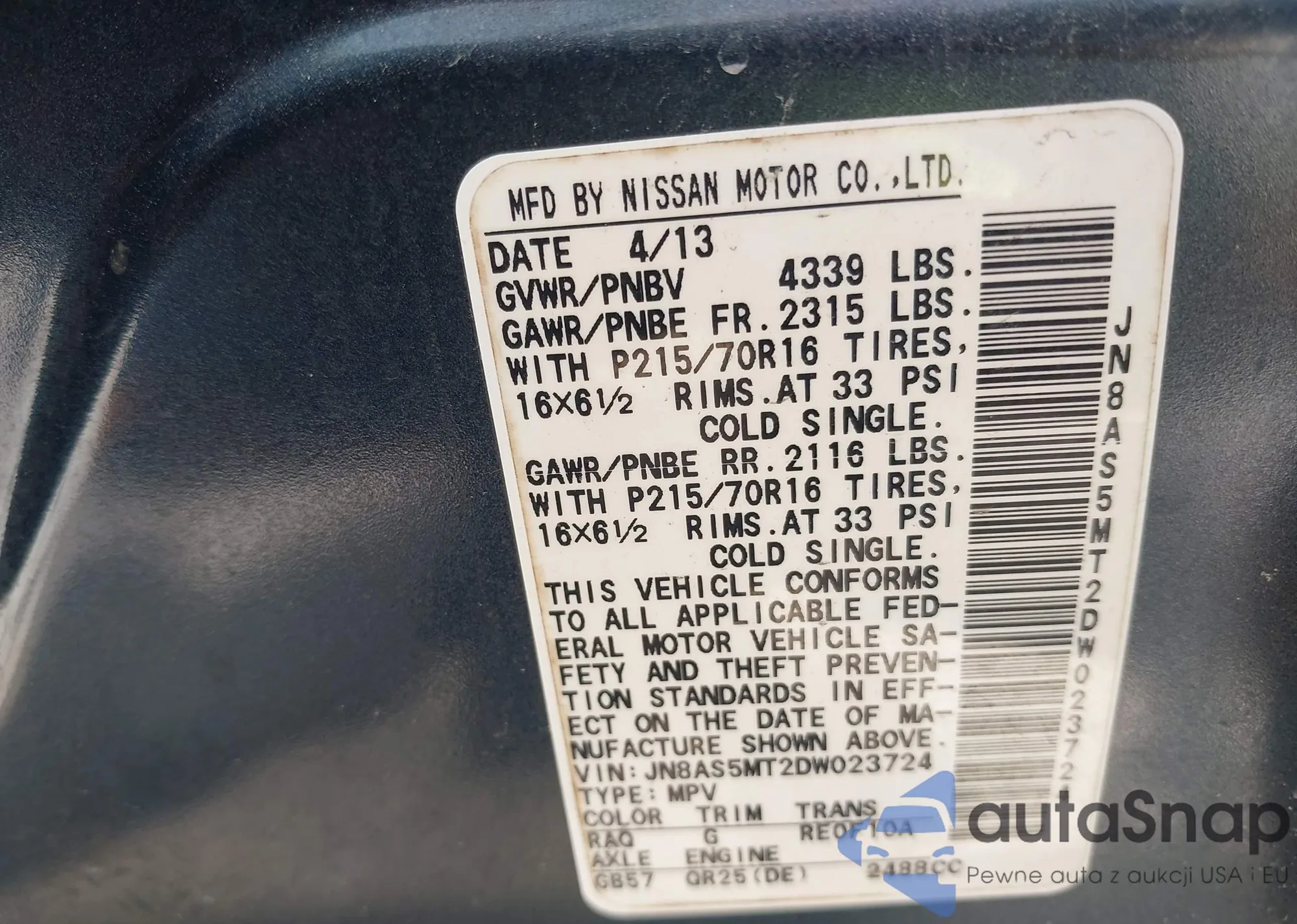 VIN: JN8AS5MT2DW023724