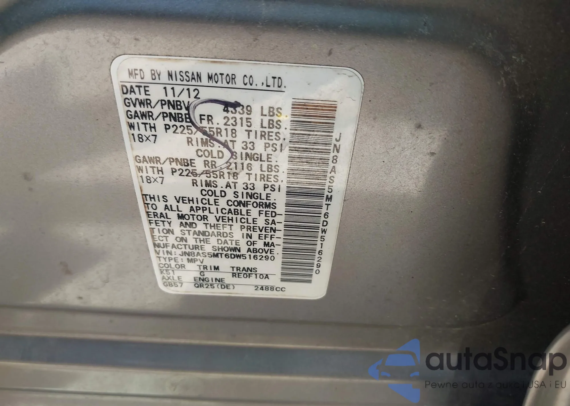 VIN: JN8AS5MT6DW516290