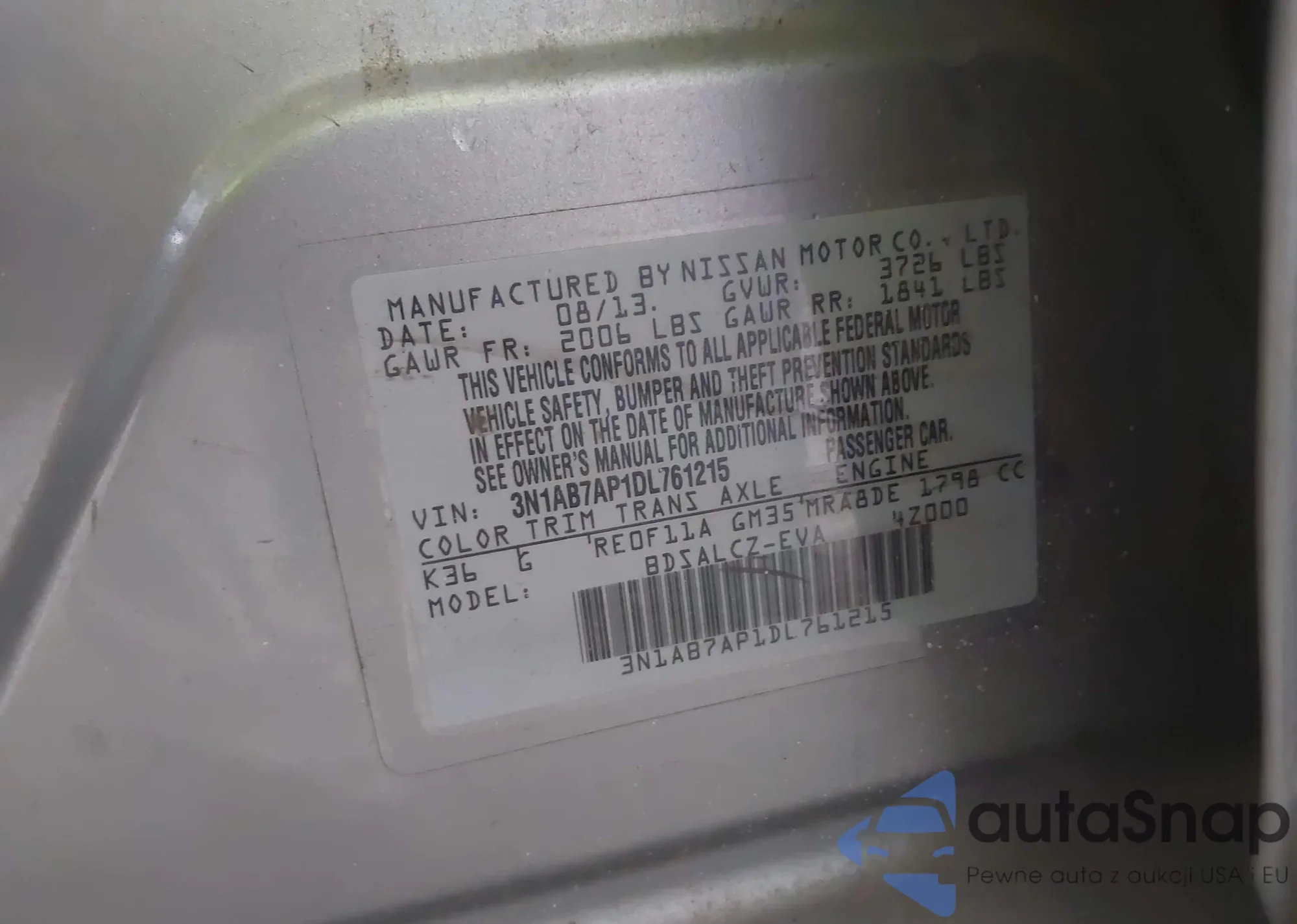 VIN: 3N1AB7AP1DL761215