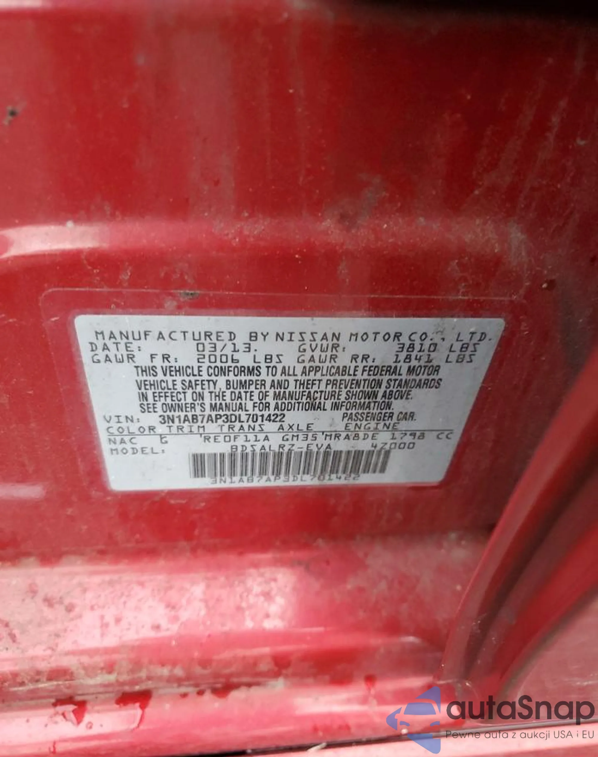 VIN: 3N1AB7AP3DL701422