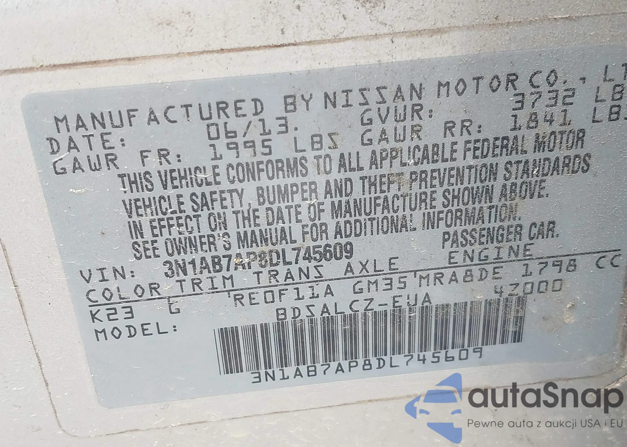 VIN: 3N1AB7AP8DL745609