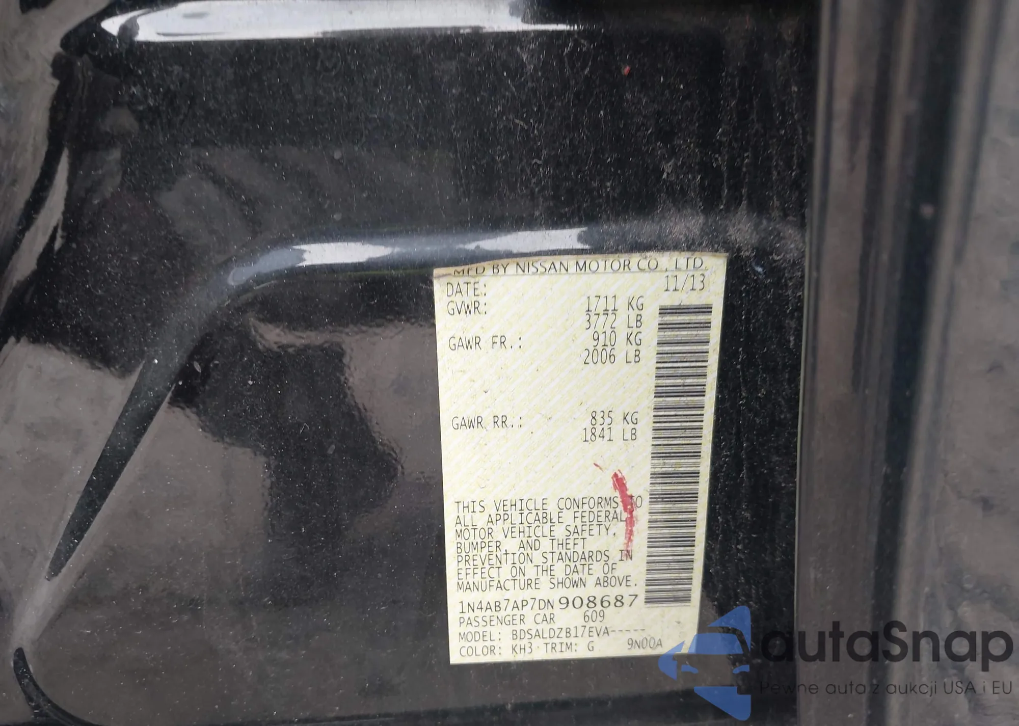 VIN: 1N4AB7AP7DN908687