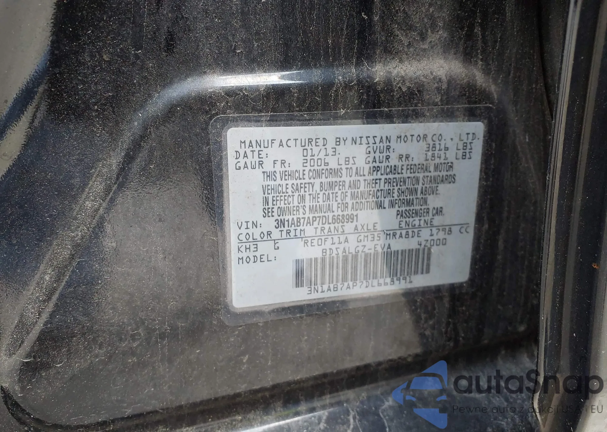 VIN: 3N1AB7AP7DL668991