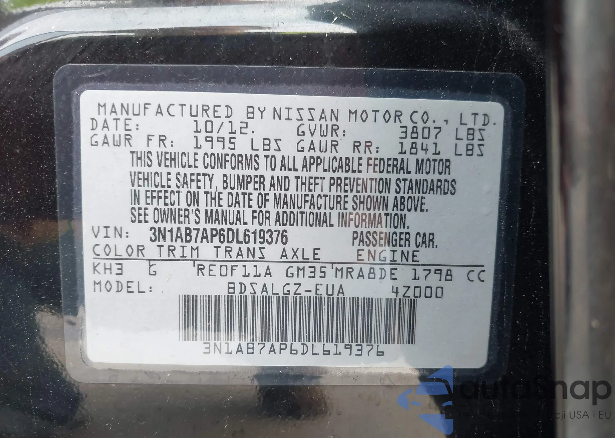 • VIN: 3N1AB7AP6DL619376