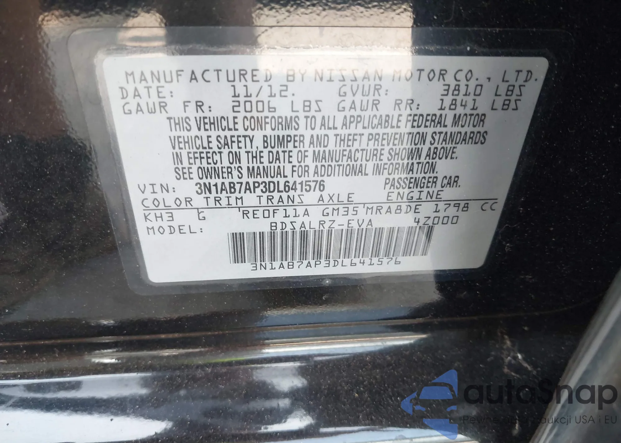 VIN: 3N1AB7AP3DL641576