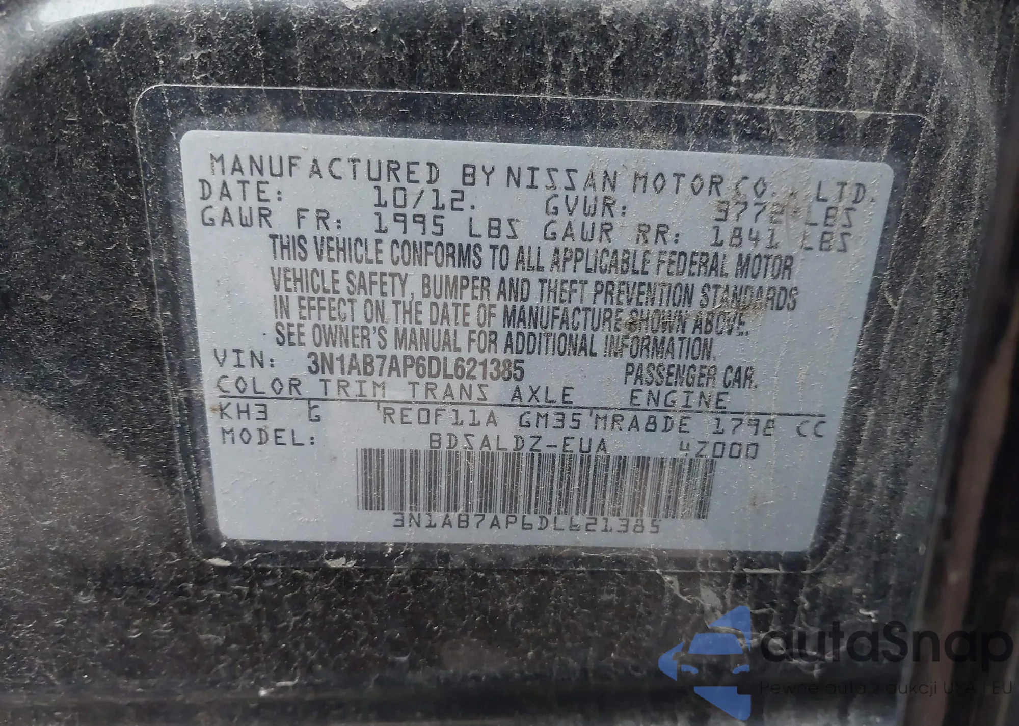 VIN: 3N1AB7AP6DL621385