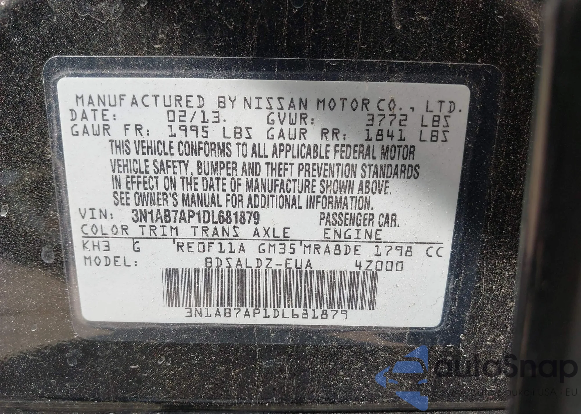 • VIN: 3N1AB7AP1DL681879
