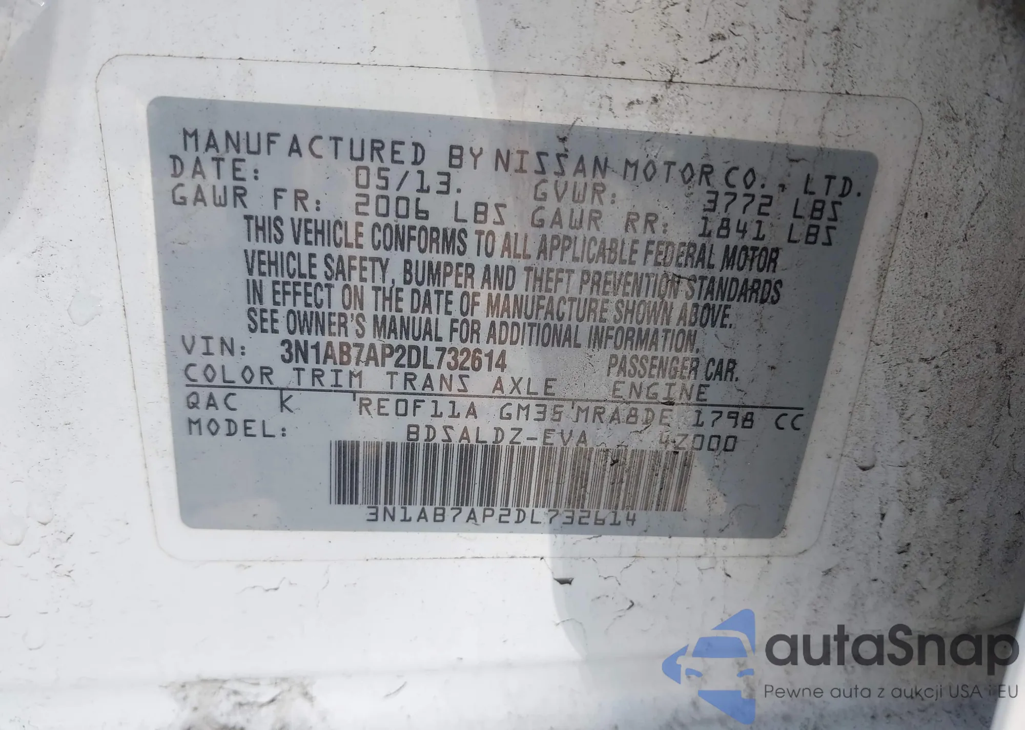 VIN: 3N1AB7AP2DL732614