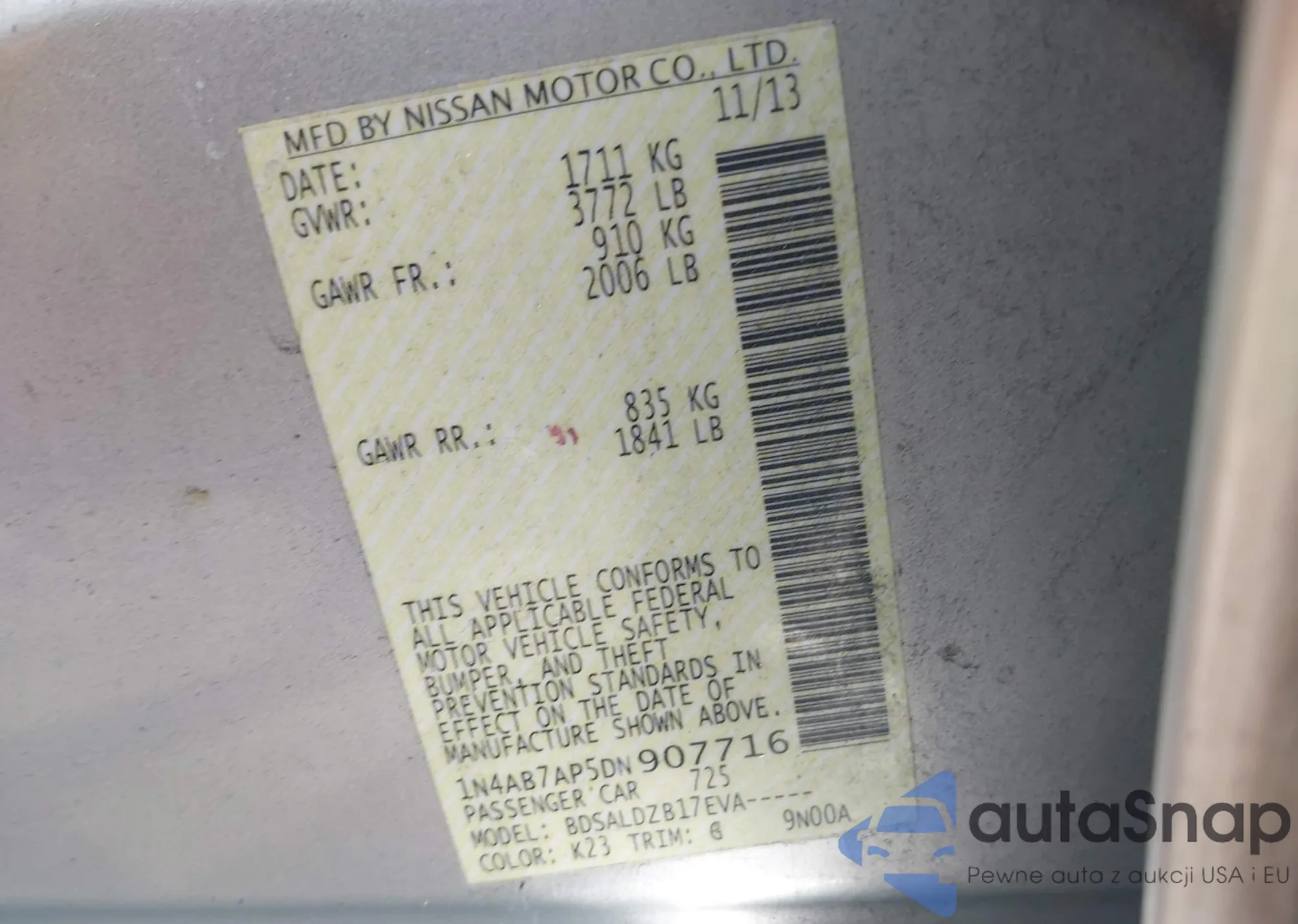 VIN: 1N4AB7AP5DN907716