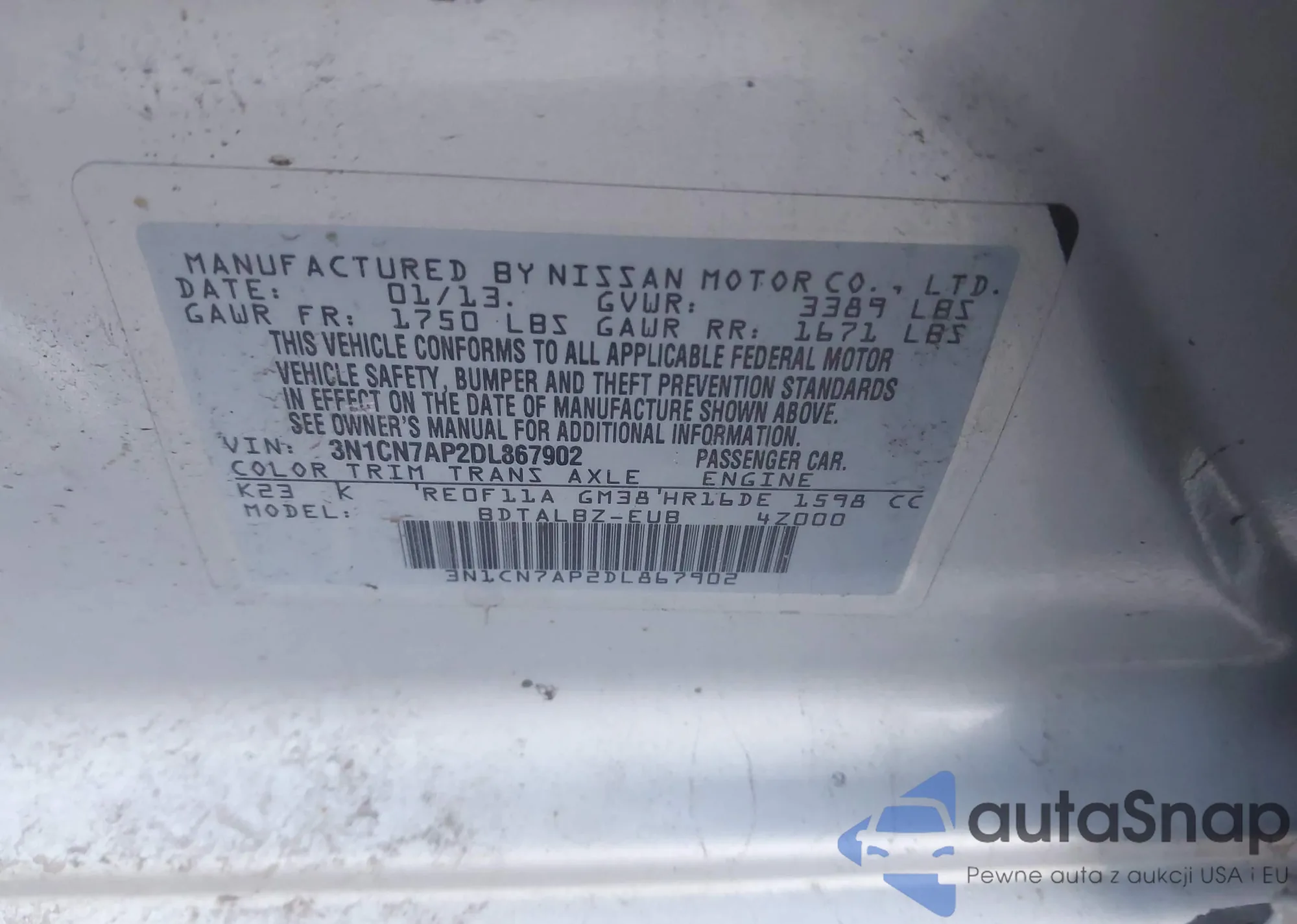 VIN: 3N1CN7AP2DL867902
