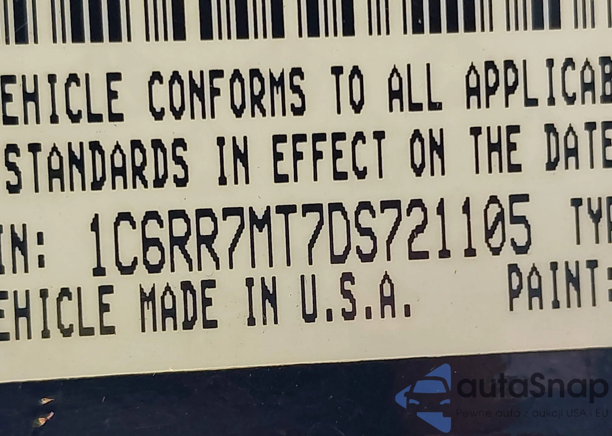 • VIN: 1C6RR7MT7DS721105