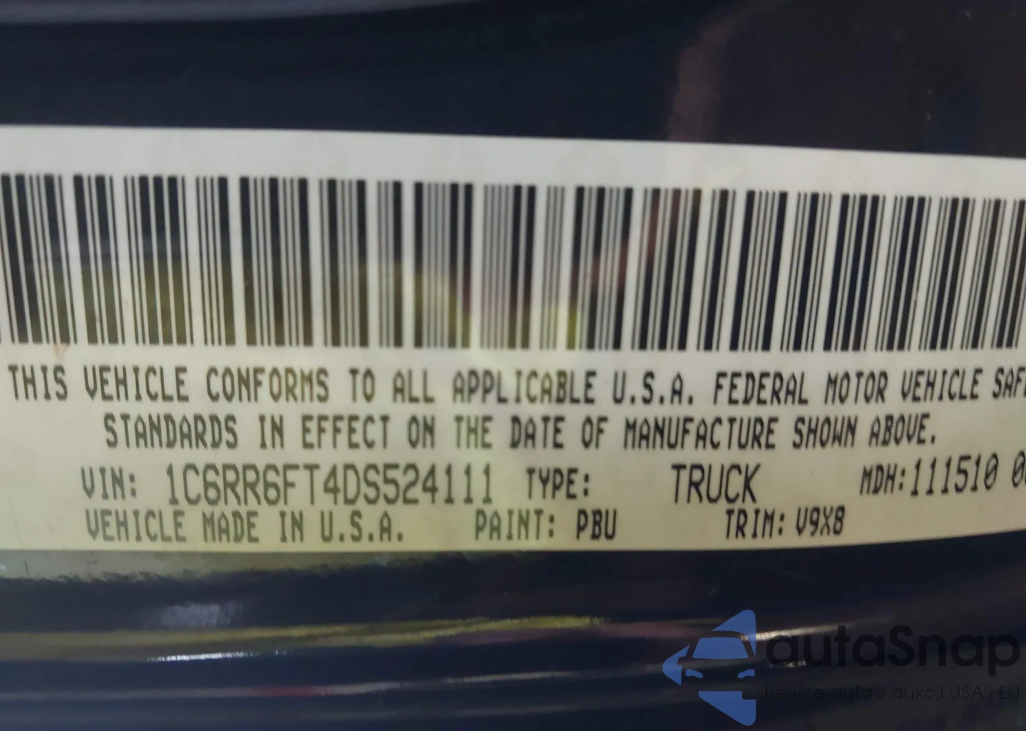 VIN: 1C6RR6FT4DS524111
