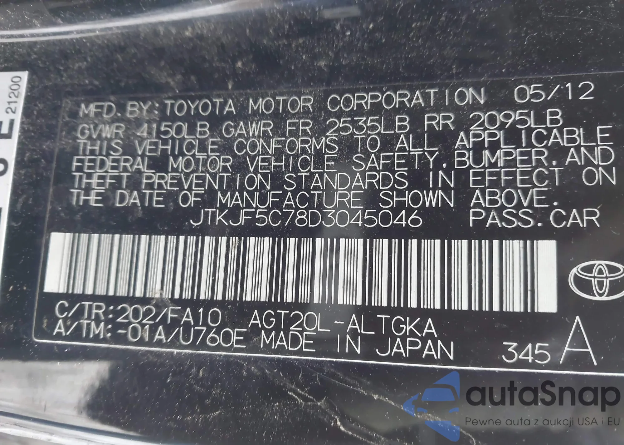 VIN: JTKJF5C78D3045046