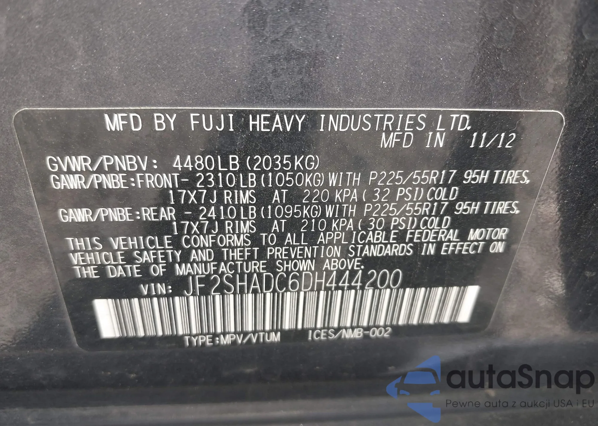 VIN: JF2SHADC6DH444200