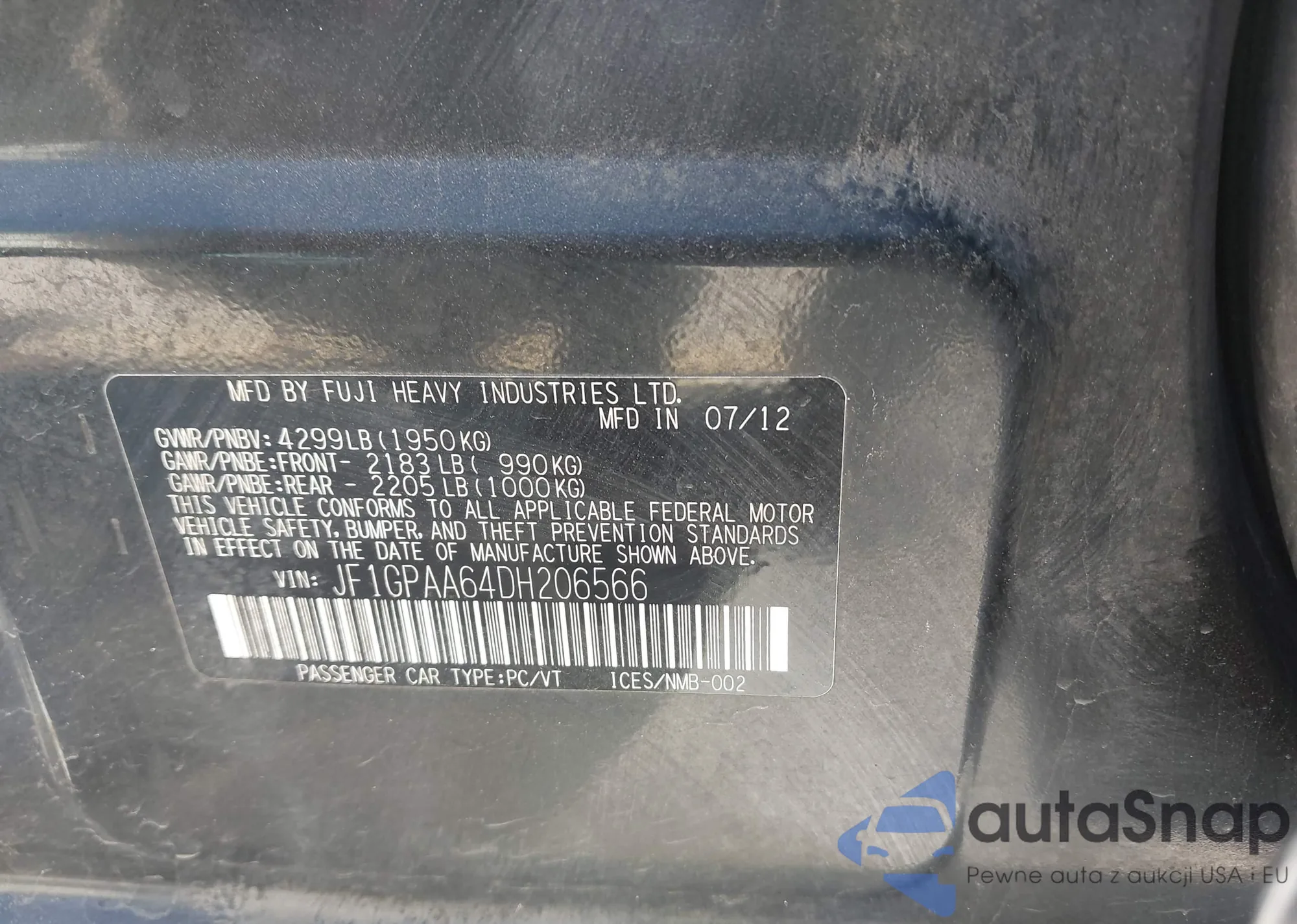 • VIN: JF1GPAA64DH206566