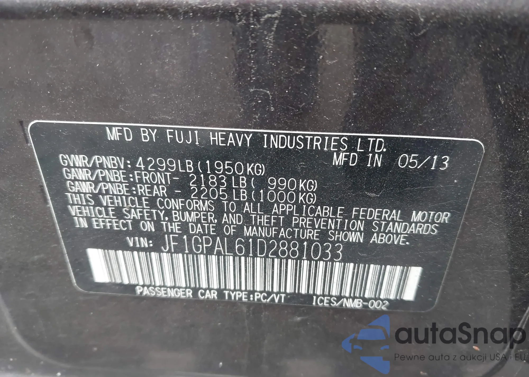 VIN: JF1GPAL61D2881033