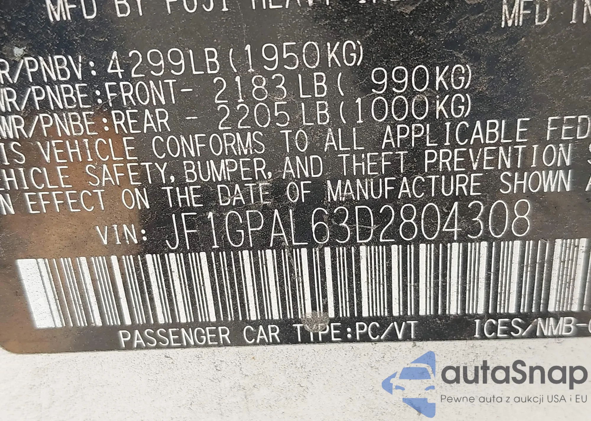 VIN: JF1GPAL63D2804308