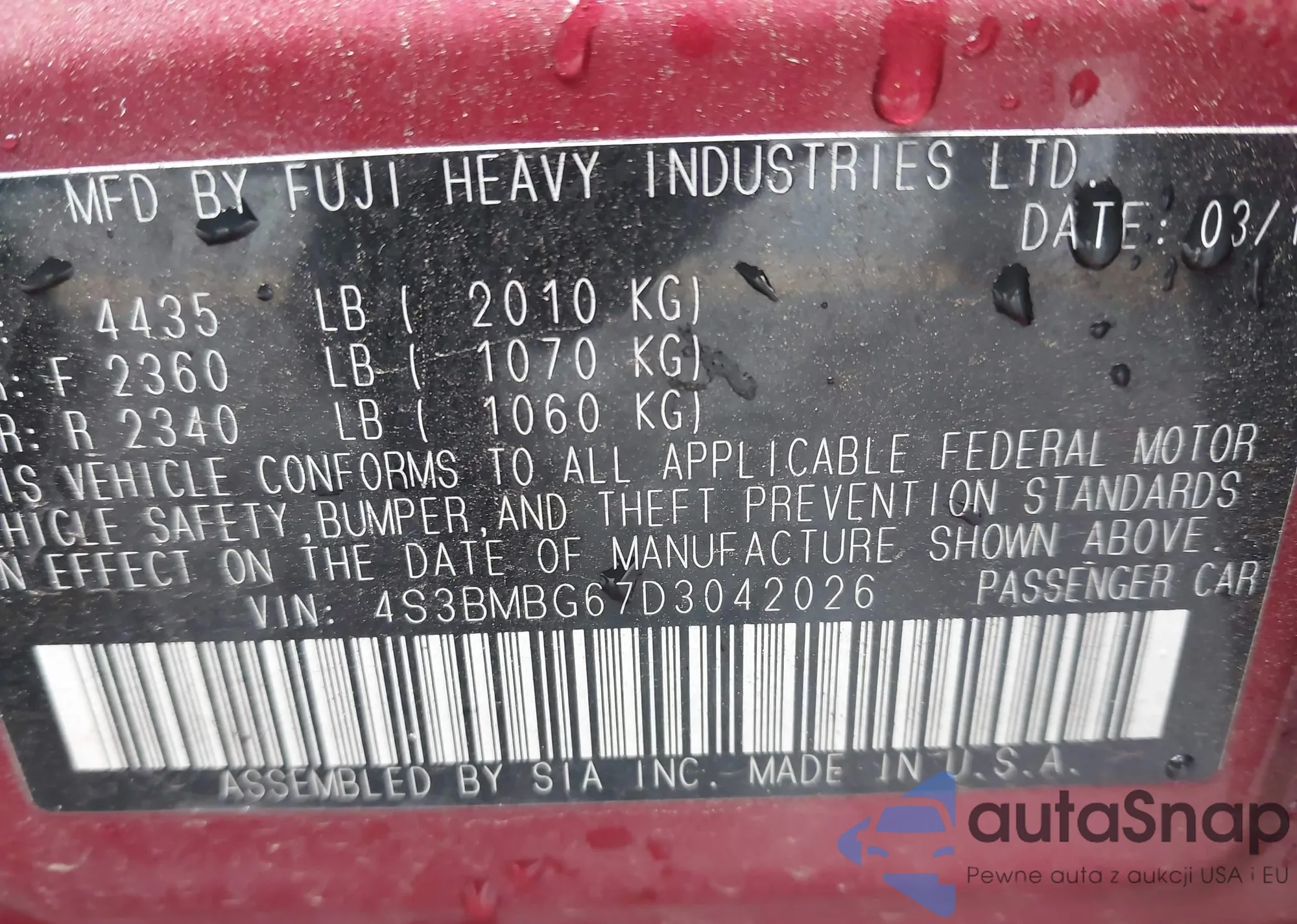 • VIN: 4S3BMBG67D3042026