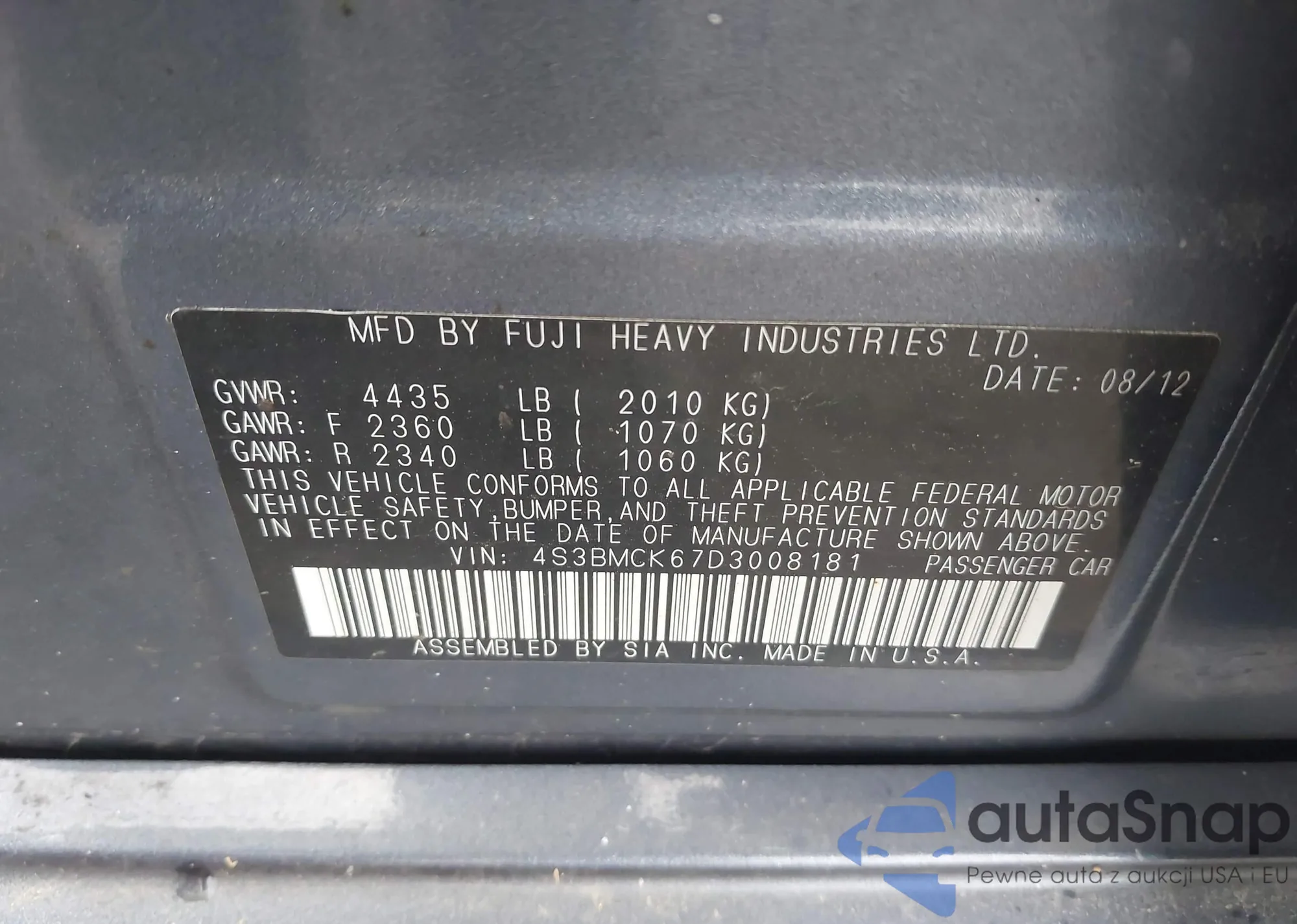 VIN: 4S3BMCK67D3008181