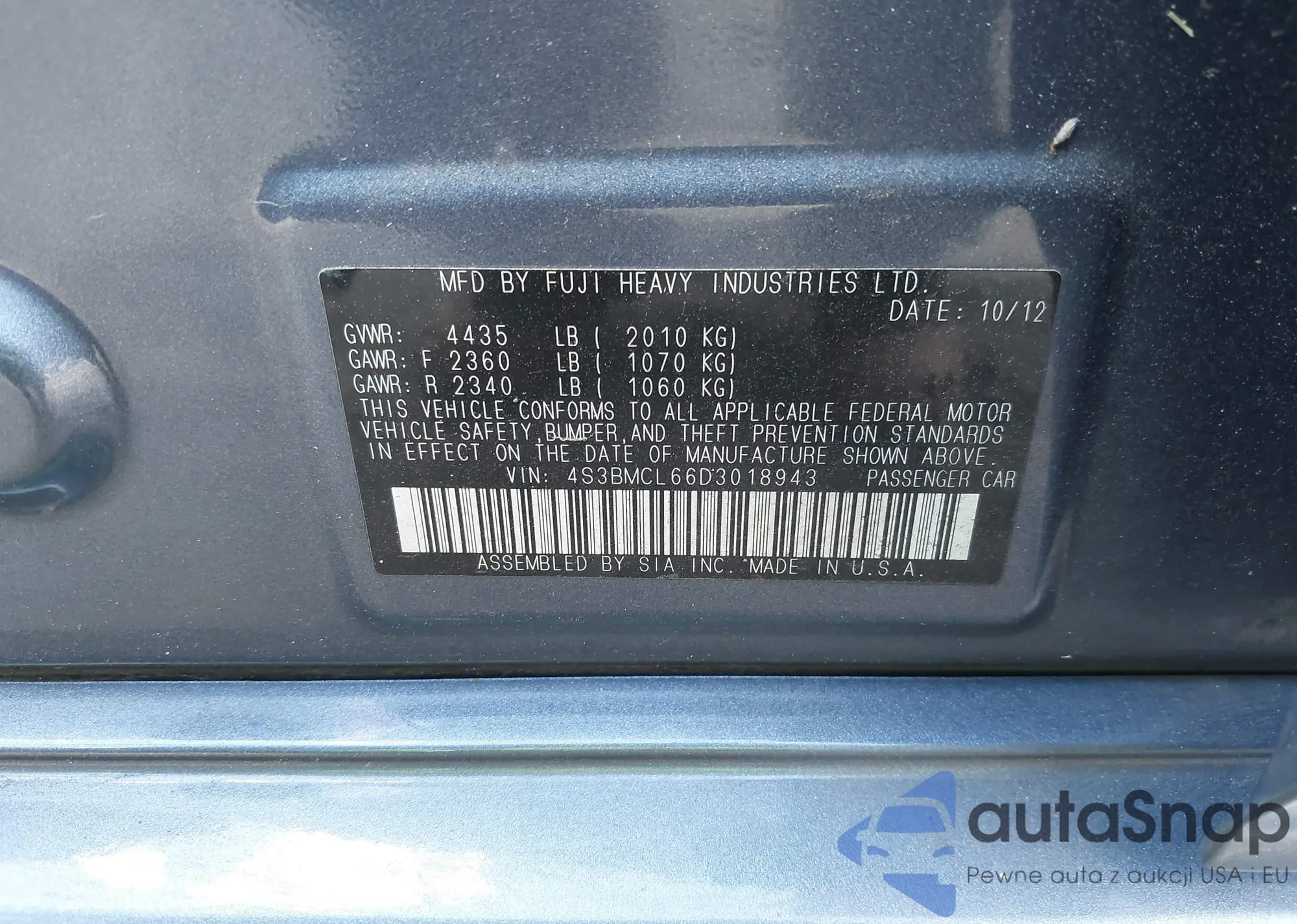 VIN: 4S3BMCL66D3018943