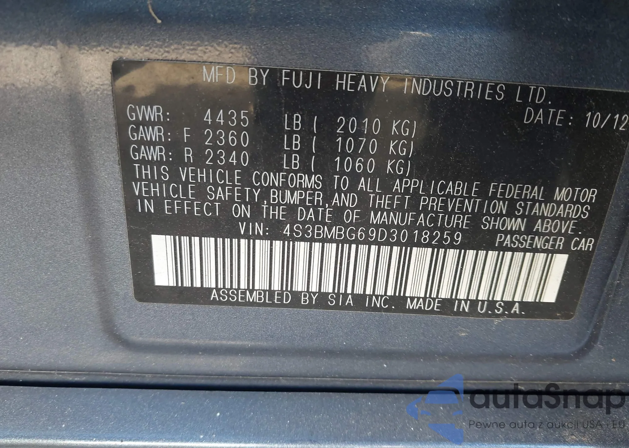 VIN: 4S3BMBG69D3018259