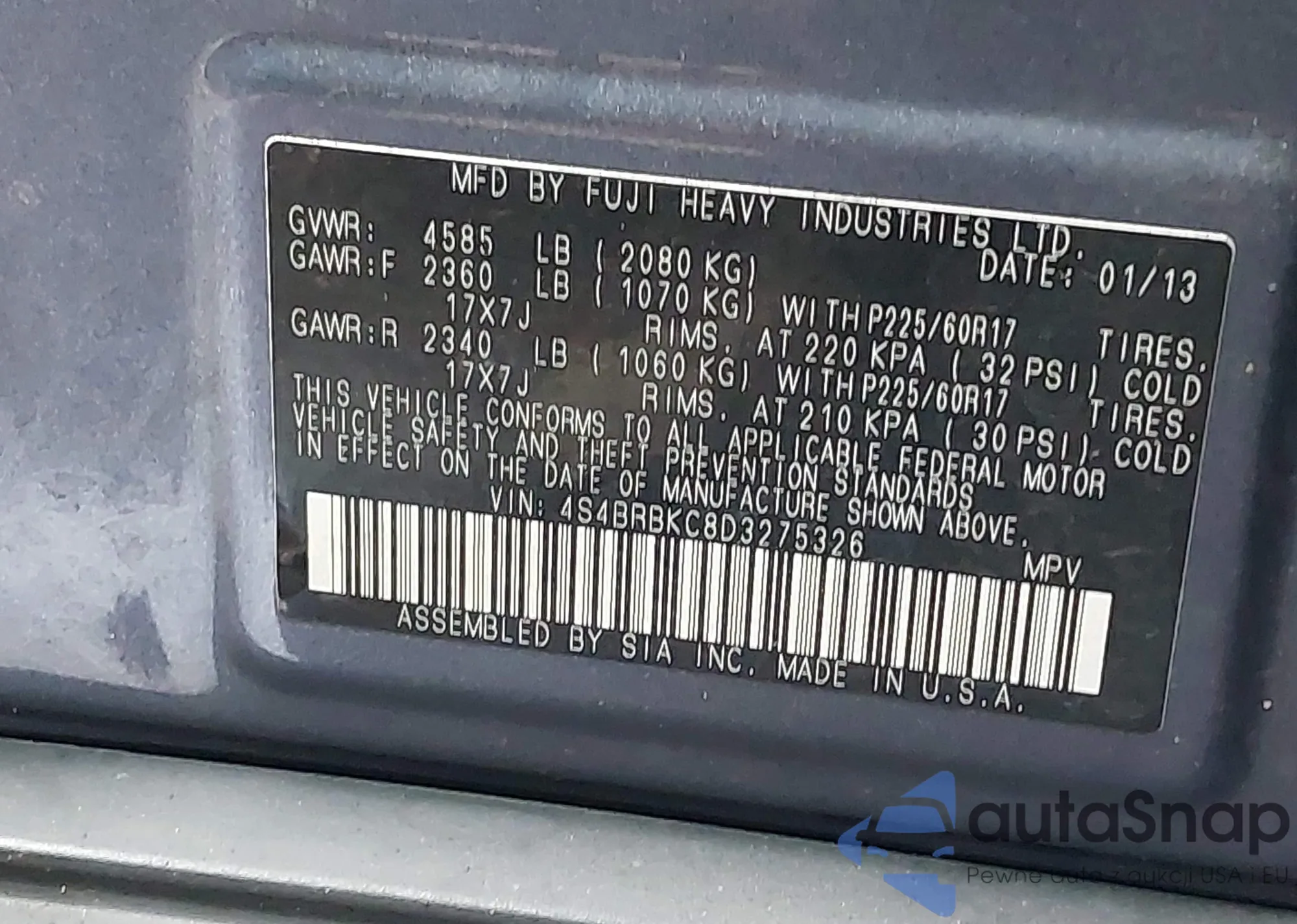 VIN: 4S4BRBKC8D3275326