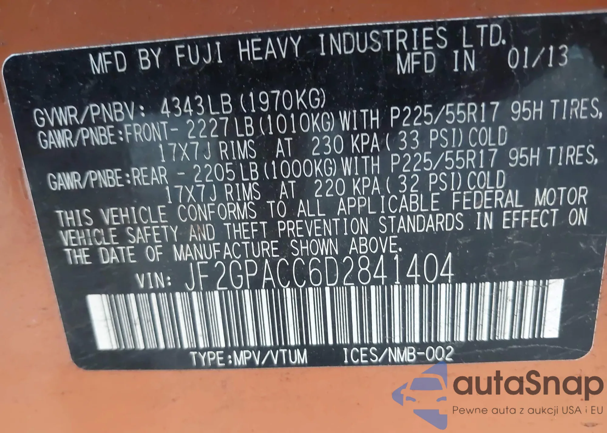 VIN: JF2GPACC6D2841404