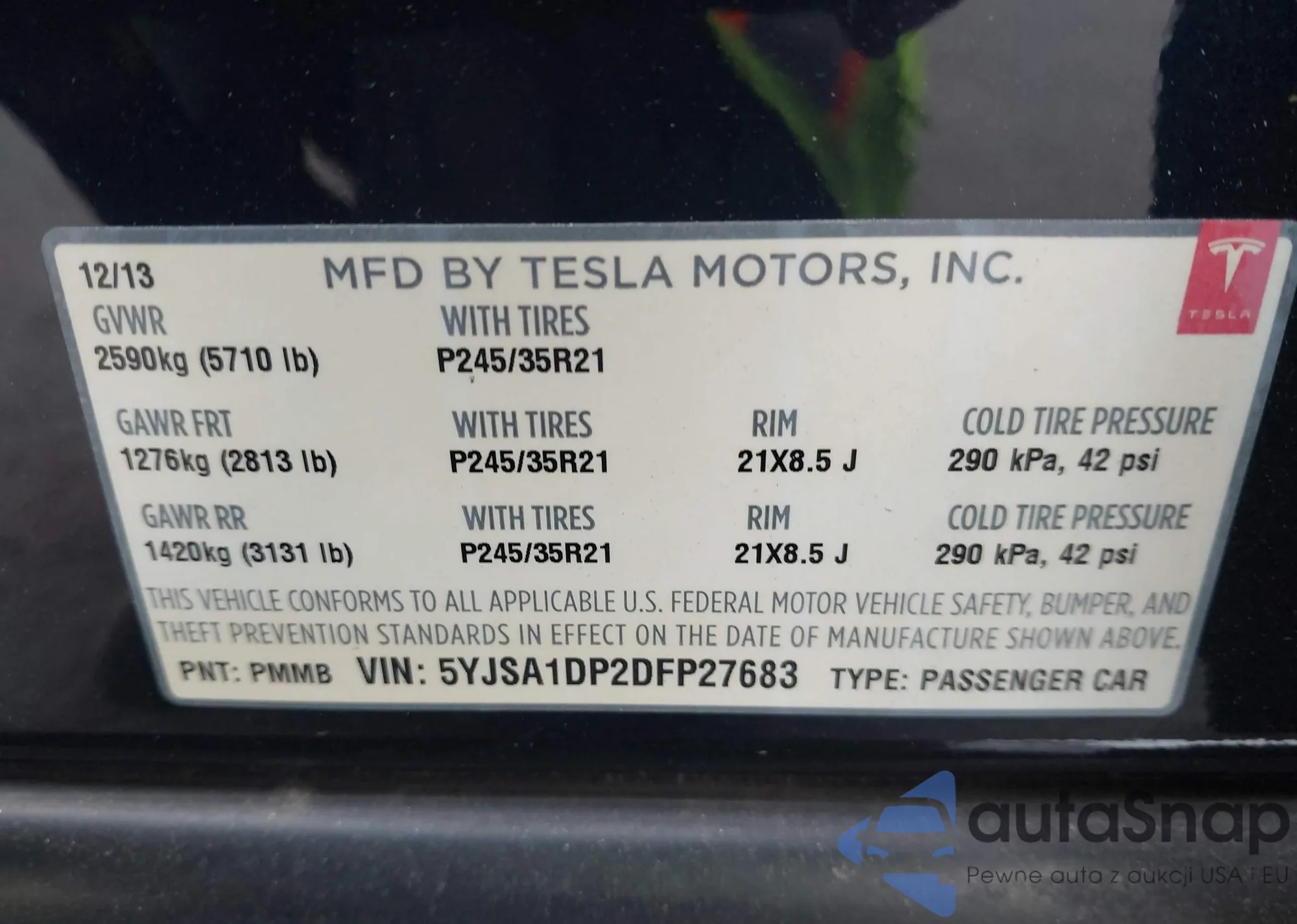 • VIN: 5YJSA1DP2DFP27683