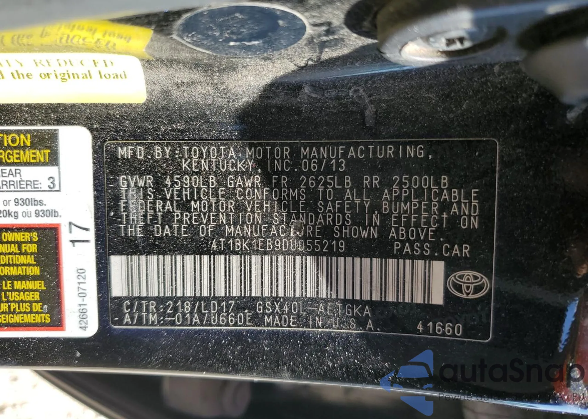 VIN: 4T1BK1EB9DU055219