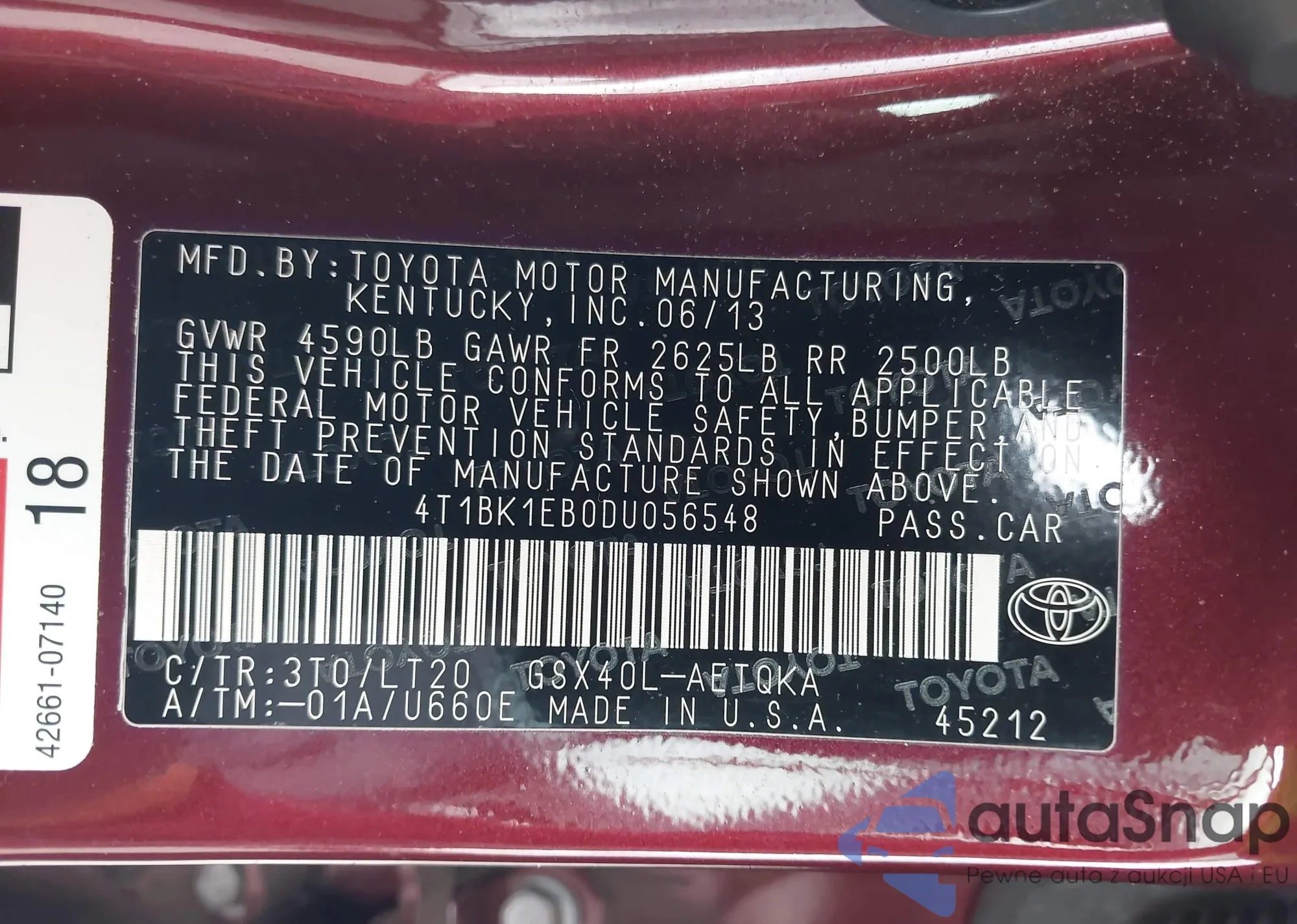 VIN: 4T1BK1EB0DU056548