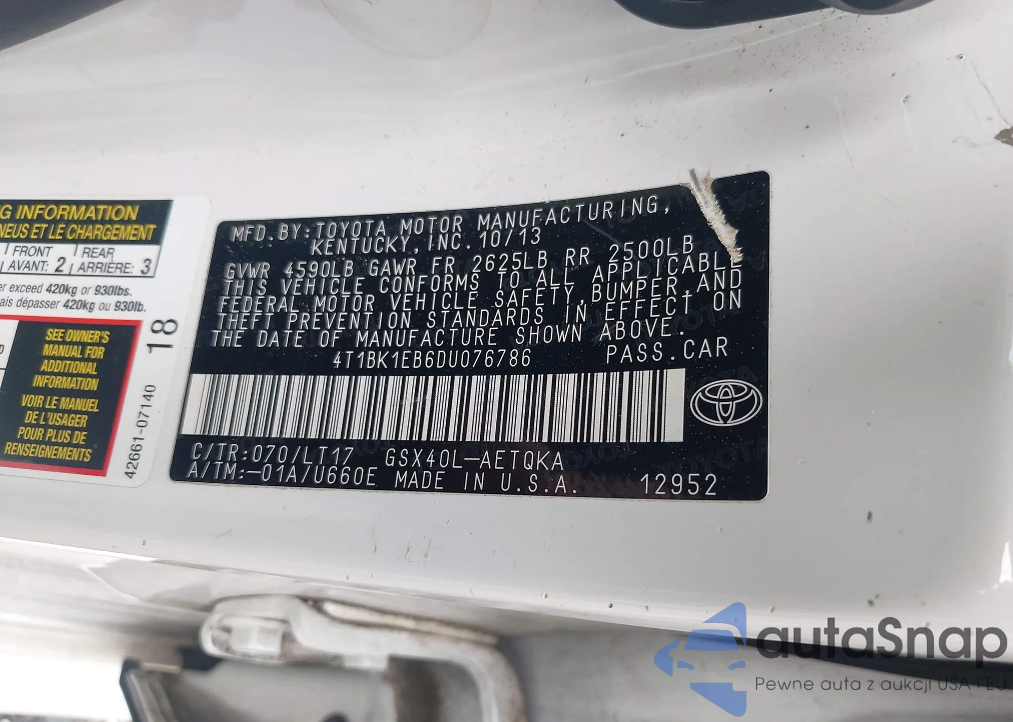 VIN: 4T1BK1EB6DU076786