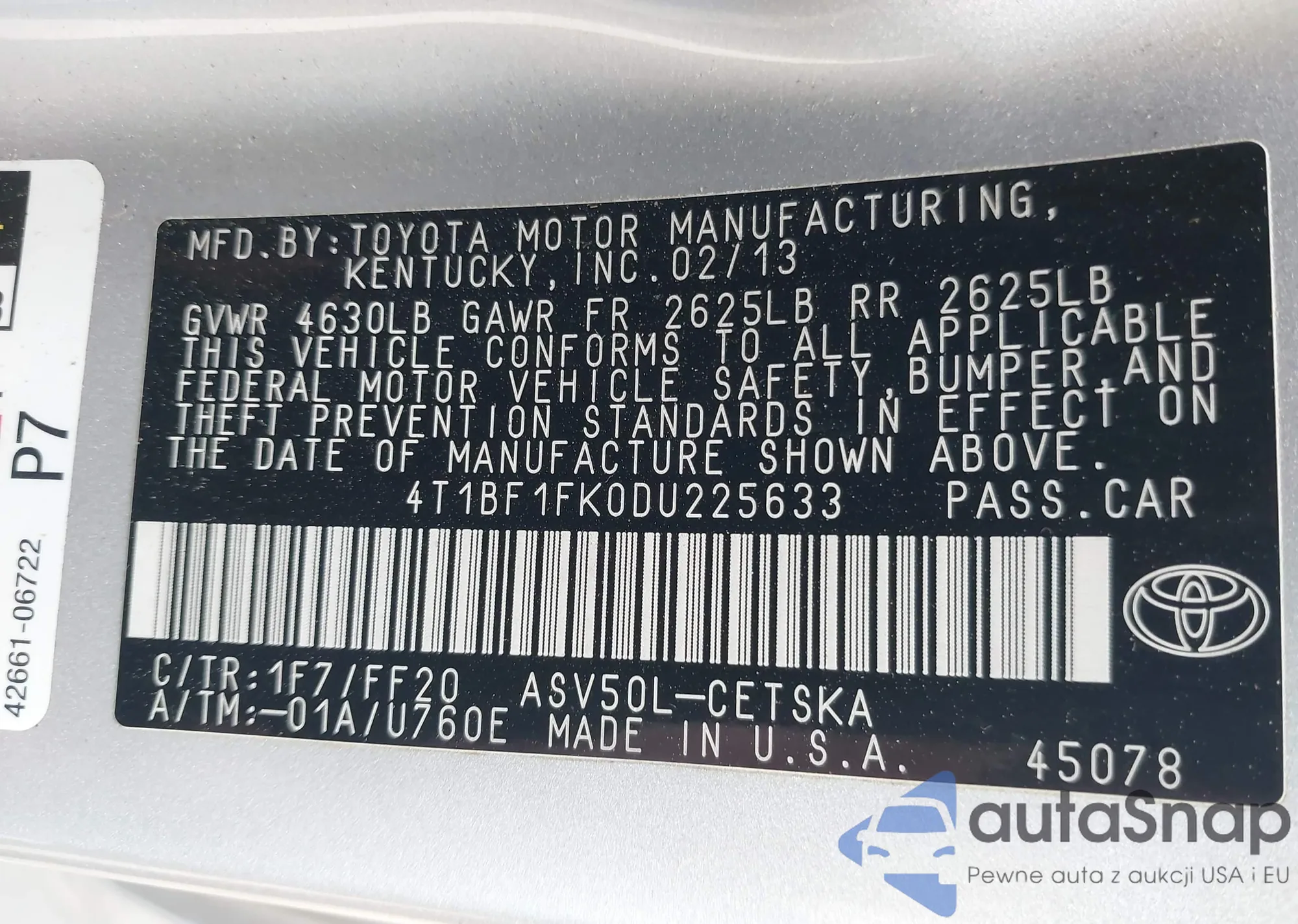 VIN: 4T1BF1FK0DU225633