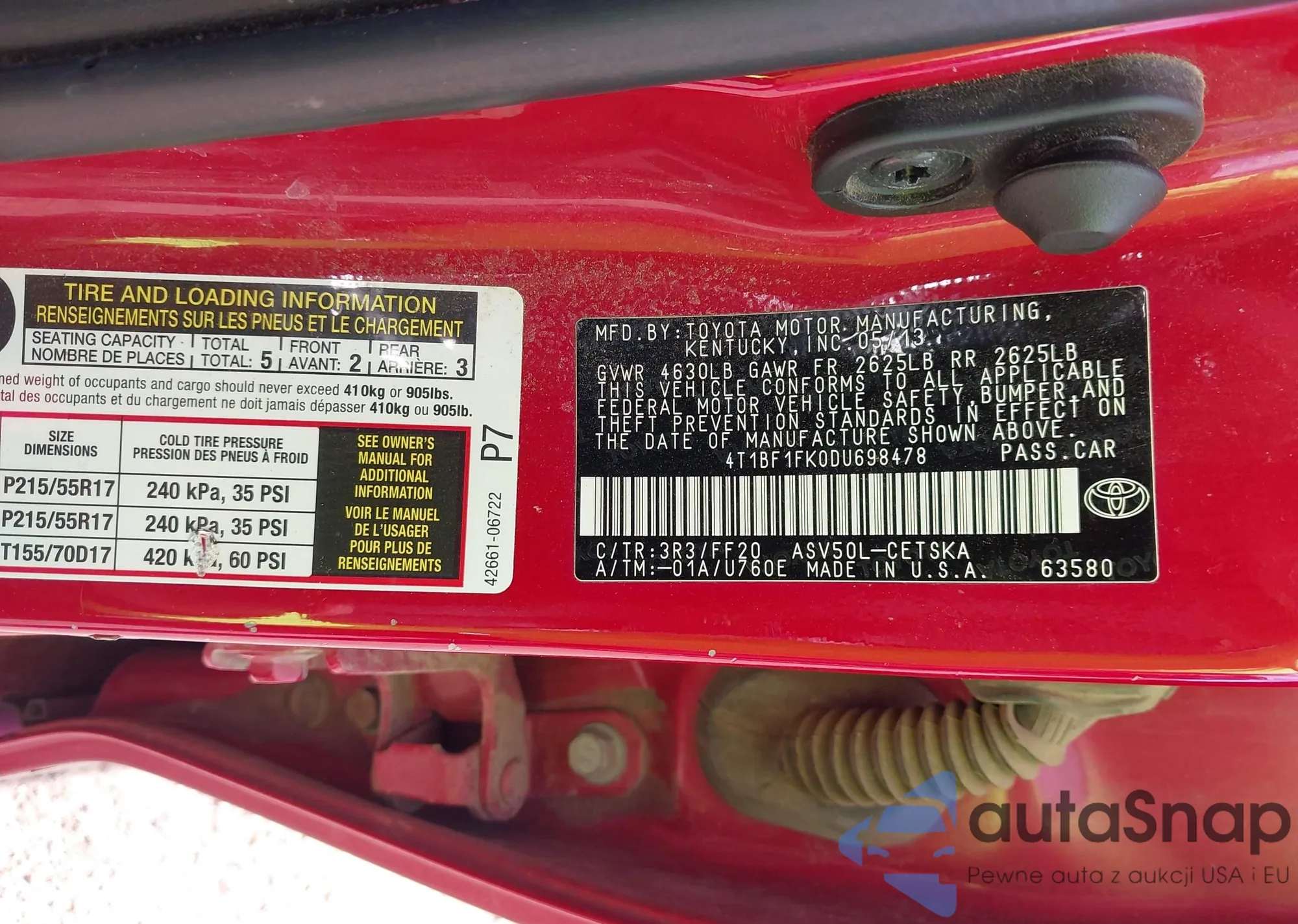 VIN: 4T1BF1FK0DU698478