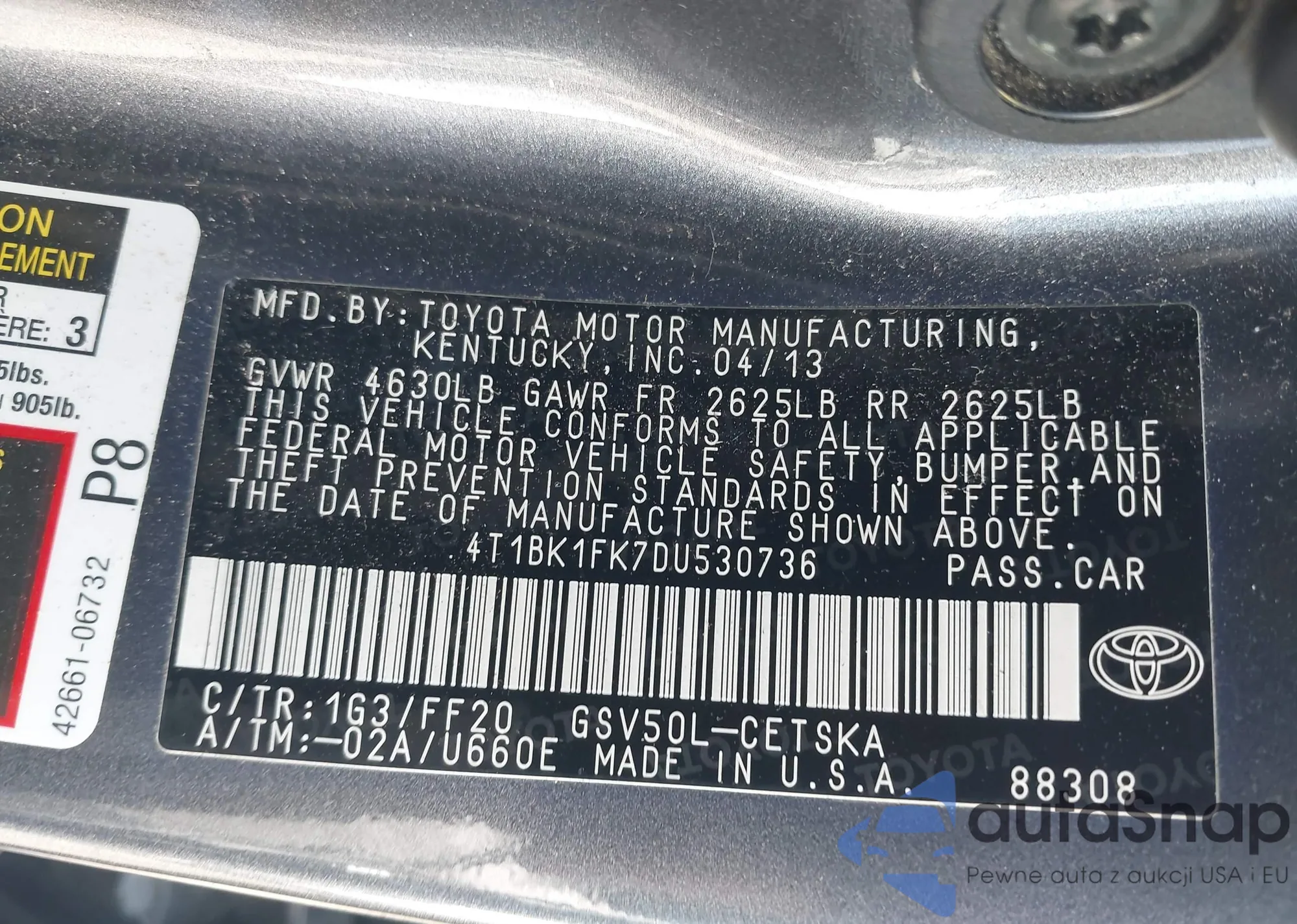 VIN: 4T1BK1FK7DU530736