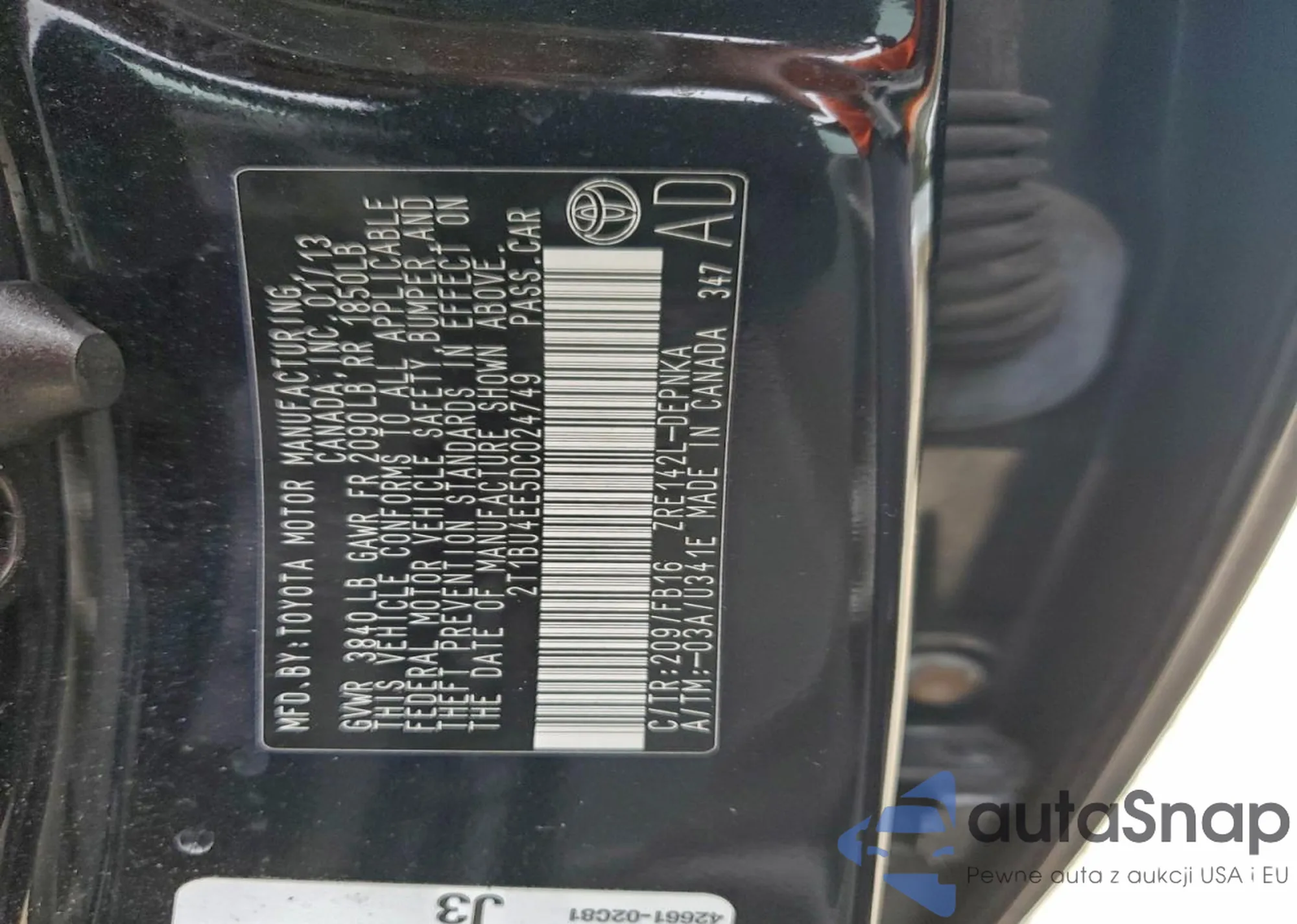 Toyota Corolla 2013 – Historia pojazdu (sprzedany na COPART)
