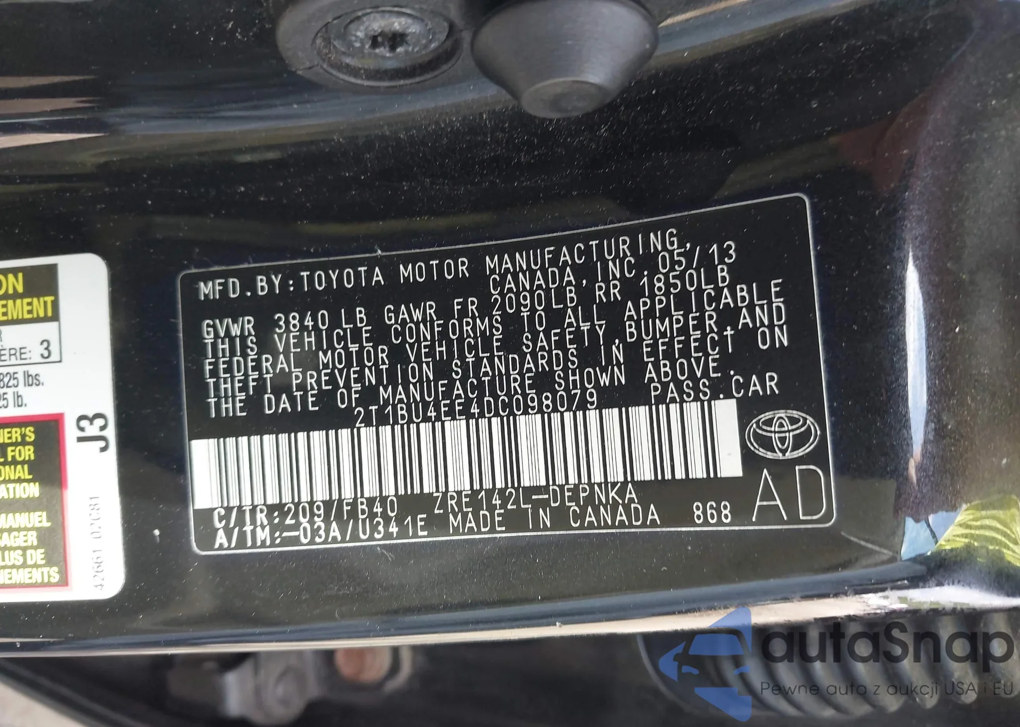 VIN: 2T1BU4EE4DC098079